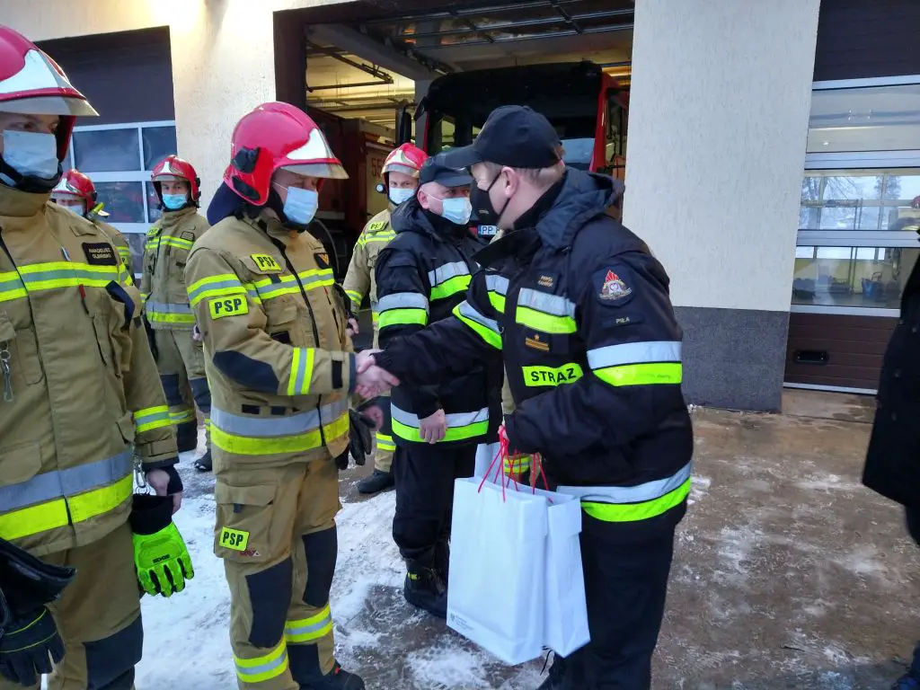 Okolicznościowe grawertony oraz flagę Polski otrzymała grupa 13 funkcjonariuszy tutejszej Komendy, uczestnicząca w misji zagranicznej gaszenia wielkopowierzchniowych pożarów lasów w Grecji, na przełomie sierpnia i września 2021 roku, w ramach międzynarodowego modułu do gaszenia pożarów lasów z ziemi GFFFV.