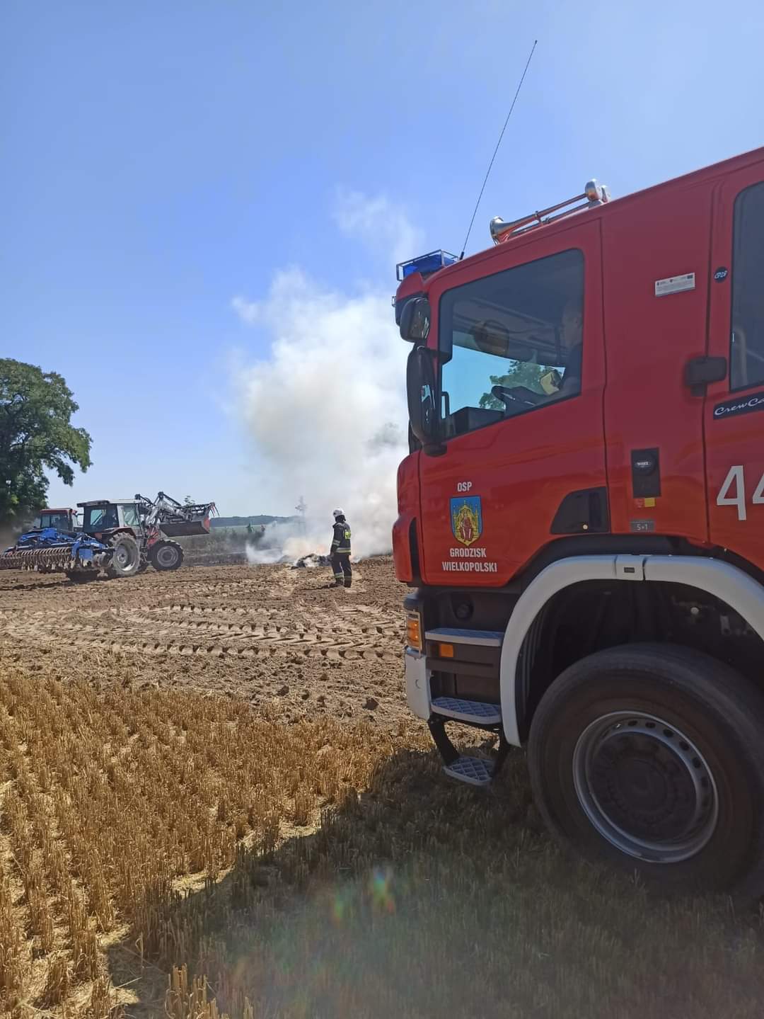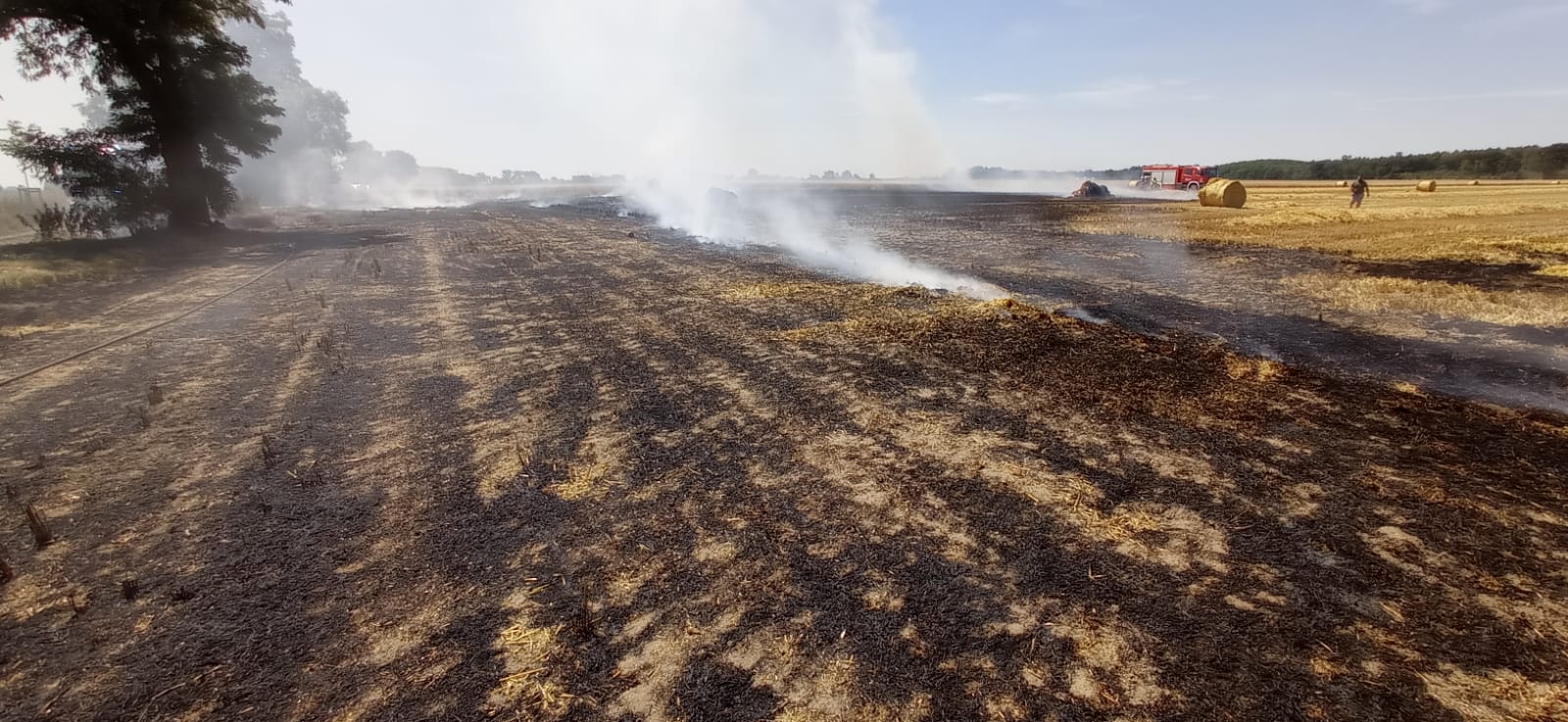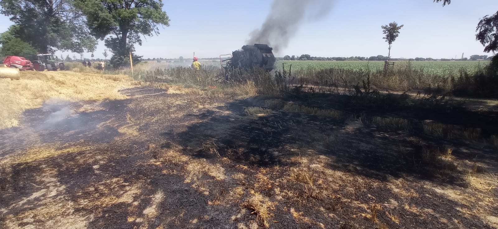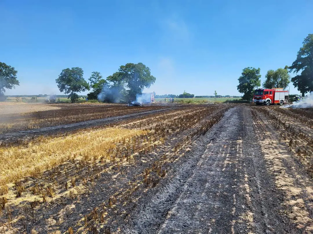 Spaliło się 1ha zboża na pniu, 2 ha ścierniska, prasa do słomy i 5 balotów słomy mówi dla portalu wlkp112.pl Tomasz Nowaczyk, z grodziskiej straży pożarnej