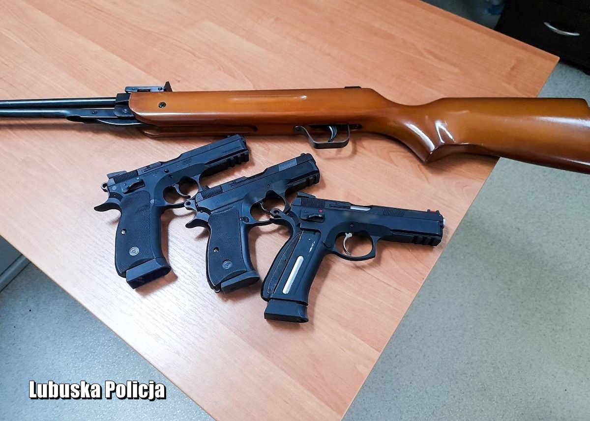 Po wyłamaniu drzwi policjanci zatrzymali 37-latka. Mężczyzna był pijany. Wydmuchał 1,5 promila alkoholu. Kryminalni zabezpieczyli trzy przedmioty przypominające broń palną krótką oraz wiatrówkę sprężynową.