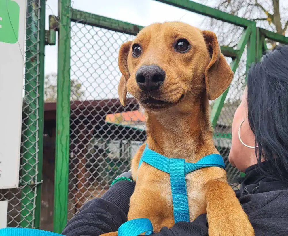 Piesek ma szanse na lepsze życie. Psiak trafił pod nasze skrzydła Adopciaki Kwidzyn, gdzie już nie ma krótkiego sznurka ale są mamcie, ciocie, wujkowie do miziania i głaskania.