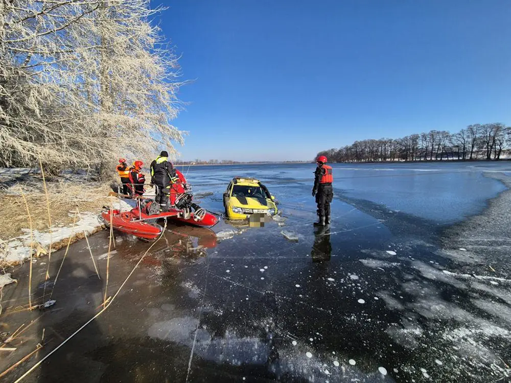 W sobotę, 22 lutego, pracownicy Muzeum Pierwszych Piastów na Lednicy powiadomili służby o samochodzie znajdującym się częściowo w wodzie na Jeziorze Lednickim kilka metrów od tzw. Ptasiej wyspy.