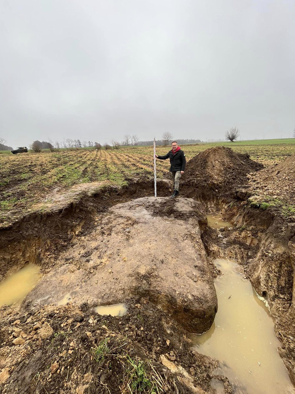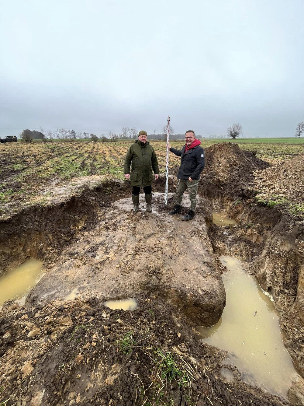 Tajemniczy głaz została przypadkowo odkryty podczas prac polowych. Był około pół metra pod ziemia an polu w rejonie Grabowa koło Kamienia Pomorskiego. To potężny granitowy głaz narzutowy, tzw. eratyk ważącego kilkadziesiąt ton.