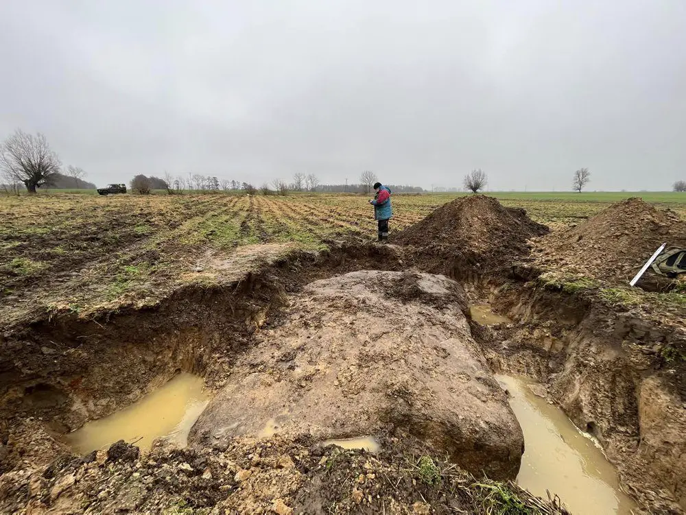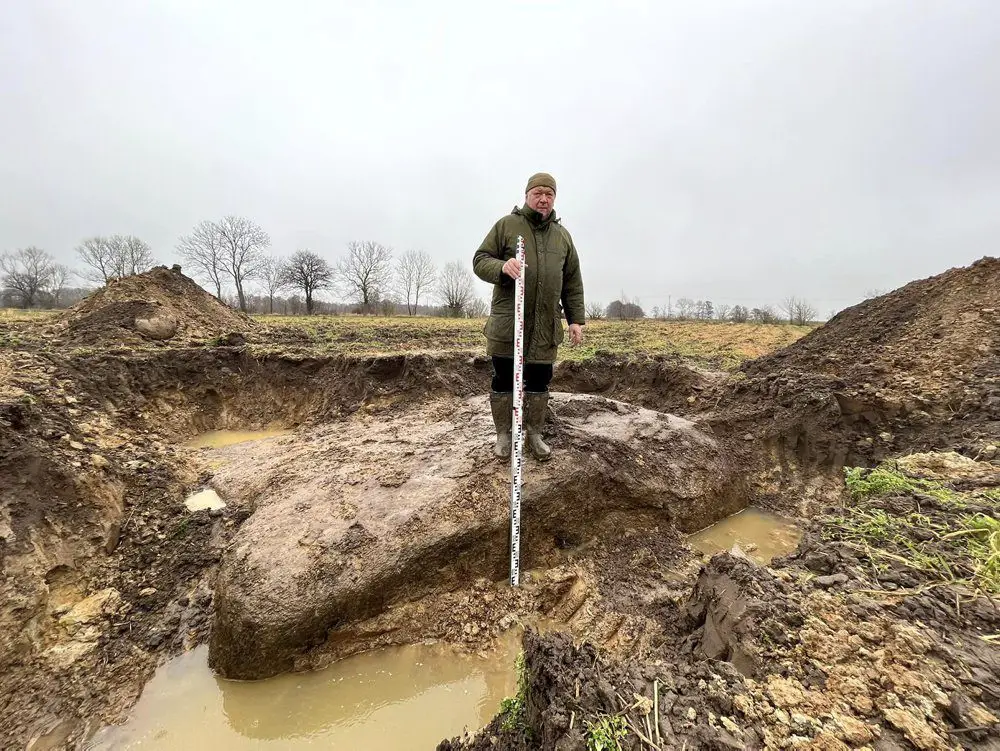 Wielki głaz został znaleziony podczas prac polowych okolicach Grabowa koło Kamienia Pomorskiego. Możliwe, że to wielki pogański ołtarz. Widać, że przed wiekami mógł być obrobiony przez człowieka.