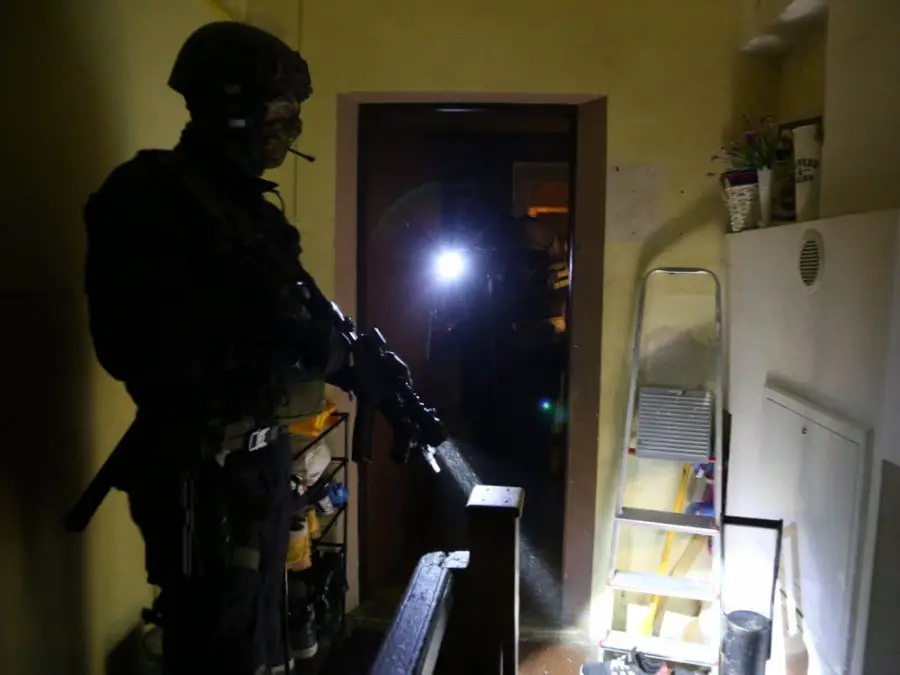 Policjanci przeszukali mieszkania zatrzymanych. Zabezpieczyli 5 sztuk broni, w tym broń maszynową typu „Skorpion”, kuszę, 230 tys. euro oraz 200 tys. zł, kilkaset elementów złotej biżuterii, niewielką ilość narkotyków oraz obraz, najprawdopodobniej pochodzący z kradzieży.