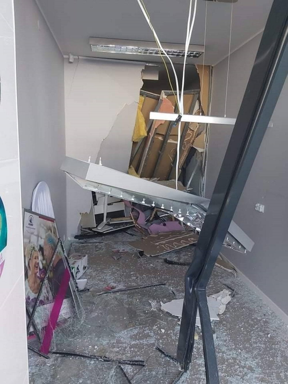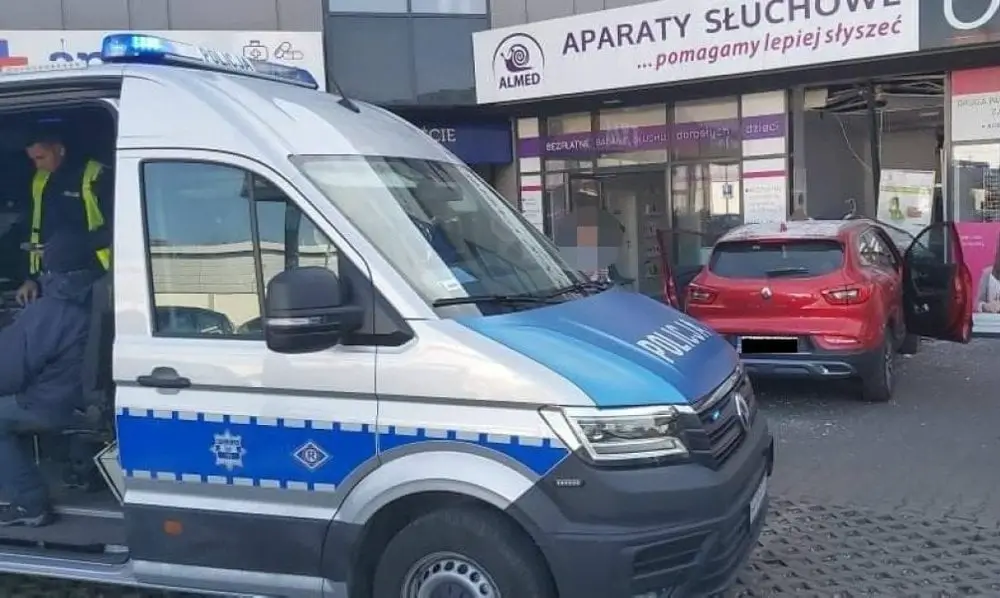 W efekcie jego samochód ruszył z impetem do przodu i wjechał w witrynę sklepu. W chwili zdarzenia w pomieszczeniu przebywał pracownik. Na całe szczęście nie siedział on przy biurku ustawionym pod ścianą zniszczoną przez samochód i nic mu się nie stało.