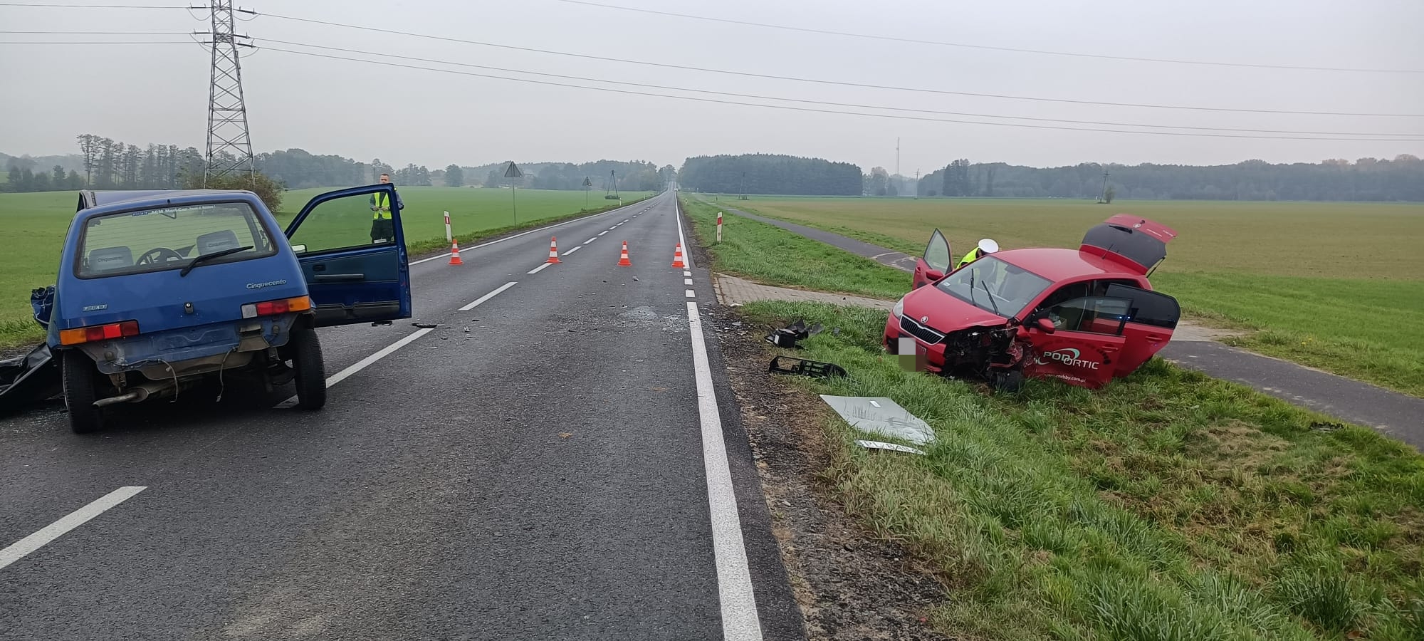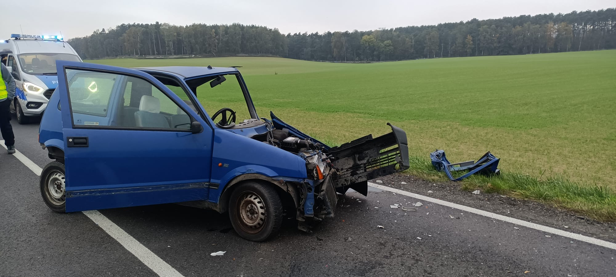Z wstępnych ustaleń policji wynika, że kierujący samochodem osobowym marki fiata cinquecento 79-letni mieszkaniec Leszna jadąc od strony Osiecznej w kierunku Leszna z nie wyjaśnionych dotąd przyczyn zjechał na przeciwległy pas ruchu i zderzył się czołowo z jadąca z nad przeciwnego kierunku skodą, którą kierował 56-letni mieszkaniec powiatu poznańskiego – informuje portal wlkp112.pl Monika Żymełka z leszczyńskiej policji
