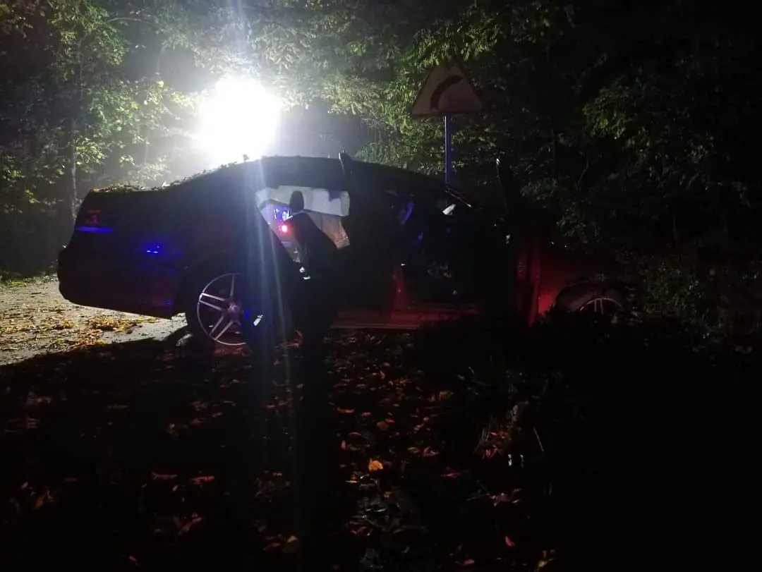 Policjanci, którzy udali się na wskazane miejsce ustalili, że w zdarzeniu udział brał jeden samochód – Mercedes E220. Jak wnika z wstępnej analizy, kierowca tego pojazdu na prostym odcinku drogi, z nieustalonych przyczyn zjechał na pobocze gdzie uderzył w drzewo. Siła uderzenia była tak duża, że samochód wyrzuciło ponownie na jezdnię ustawiając w poprzek drogi.