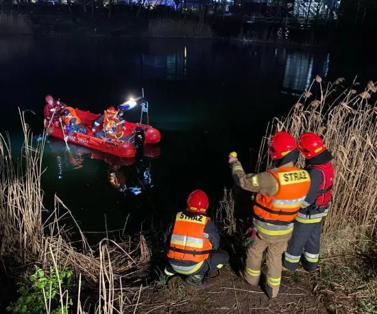 Po zabezpieczeniu miejsca zdarzenia oraz rozpoznaniu ratownicy w ubraniach wypornościowych i kamizelkach asekuracyjnych przystąpili do przeszukania brzegu stawu. Strażacy za pomocą łodzi rozpoczęli przeszukiwanie zbiornika od strony miejsca wskazanego przez wędkarza. Sukcesywnie na miejsce zdarzenia przybywały kolejne zastępy, które przeszukiwały brzeg stawu.