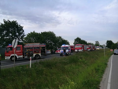 2 auta osobowe i jeden bus zderzyły się wczoraj przed godziną 19:00, w wyniku zdarzenia jedna osoba poniosła śmierć,a 3 zostały ranne. Na miejscu zdarzenia działania prowadził również prokurator oraz technik kryminalistyki. Ustalane są przyczyny tego zdarzenia. W akcji brało udział 7 zastępów straży pożarnej, LPR ratownik 9, liczne środki policyjne, oraz 3 karetki pogotowia ratunkowego. Droga na czas działań była zablokowana.