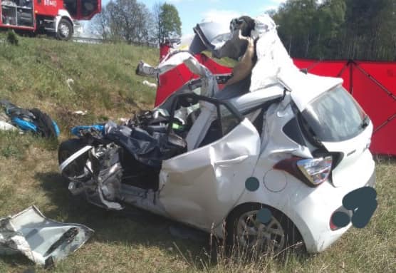 Strażacy na polecenie pracującego na miejscu prokuratora oraz lekarza medycyny sądowej wykonali dostęp do zmarłego na miejscu kierowcy samochodu osobowego.