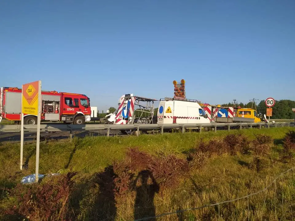 Tragedia pod Kórnikem. Bus uderzył w pracujących drogowców. Dwie osoby zginęły na miejscu. To tragiczny bilans rannego wypadku.