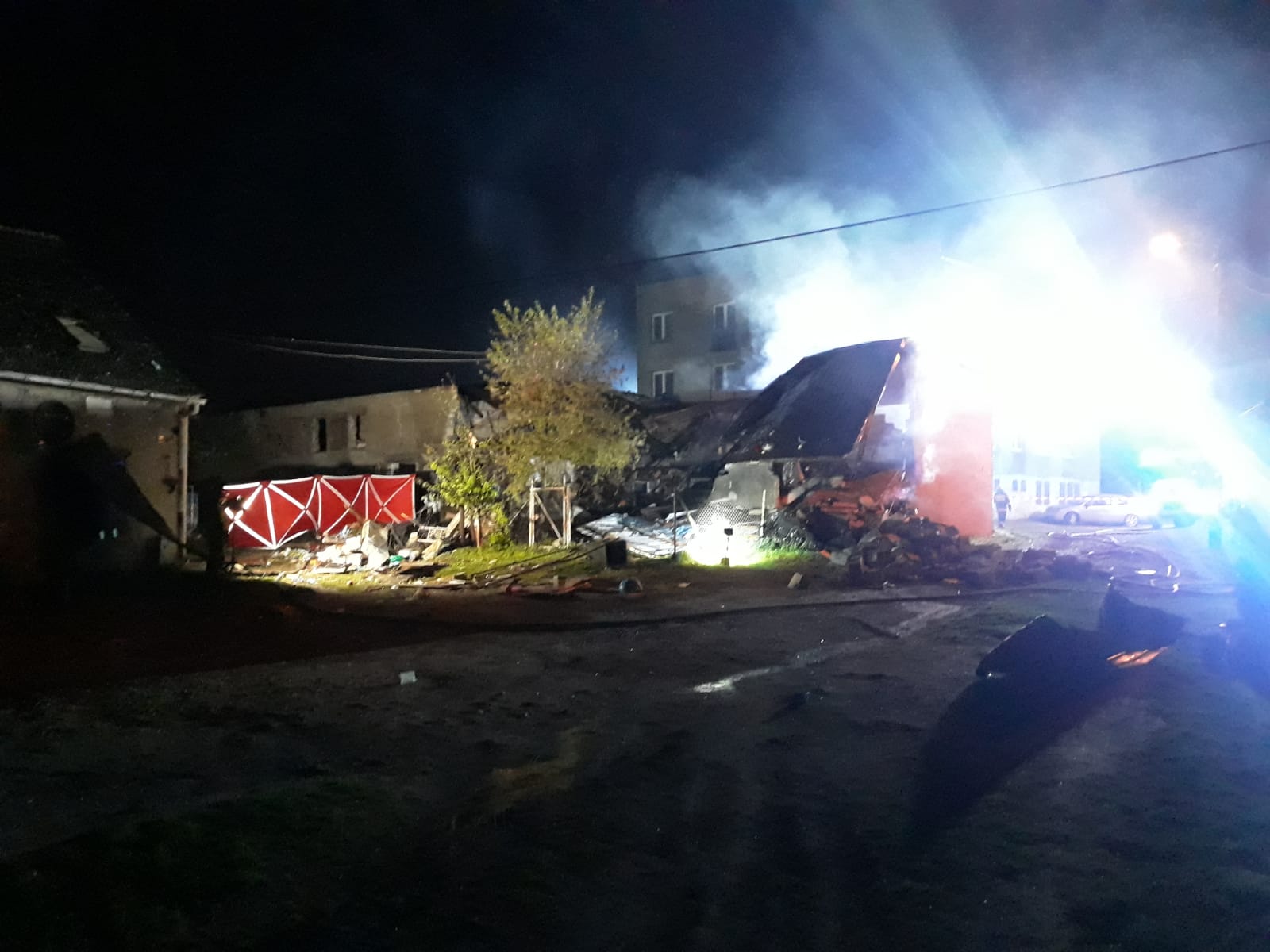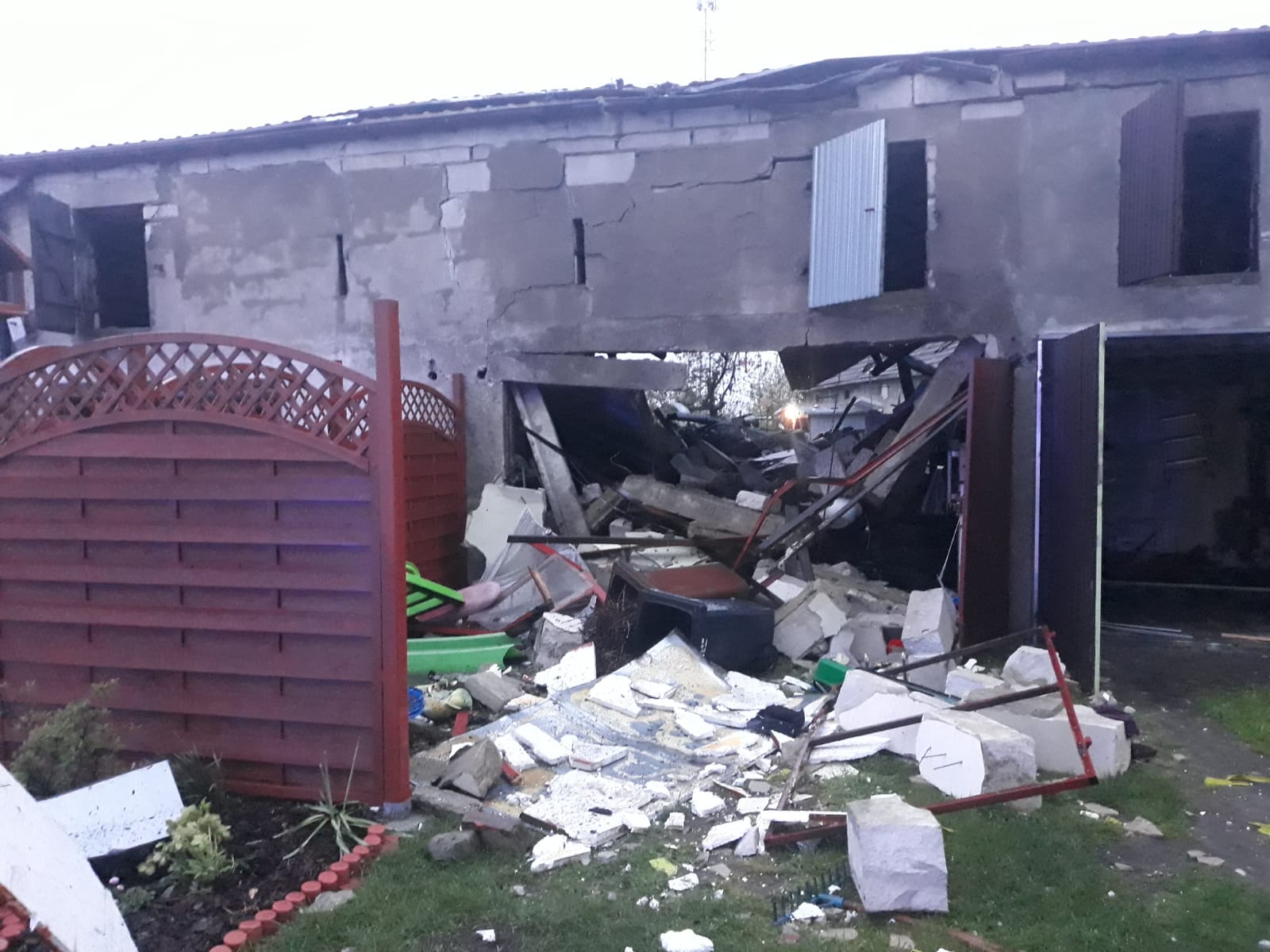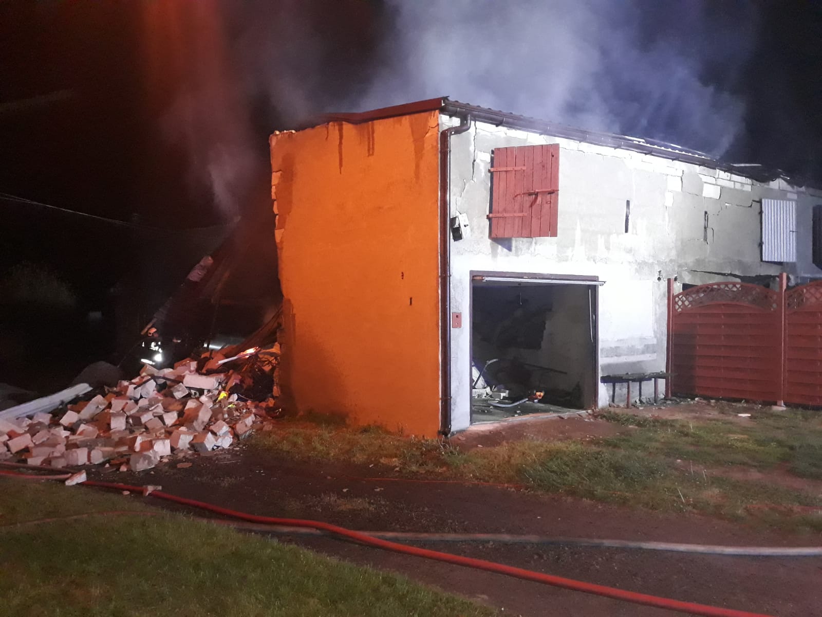 Po dojeździe na miejsce i przeprowadzonym rozpoznaniu stwierdzono, że doszło najprawdopodobniej do wybuchu, a następnie do zawalenia części budynków gospodarczych mówi dla portalu wlkp112.pl Dawid Kryś, z kościańskiej straży pożarnej