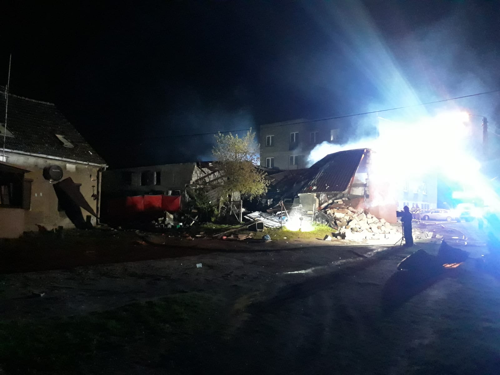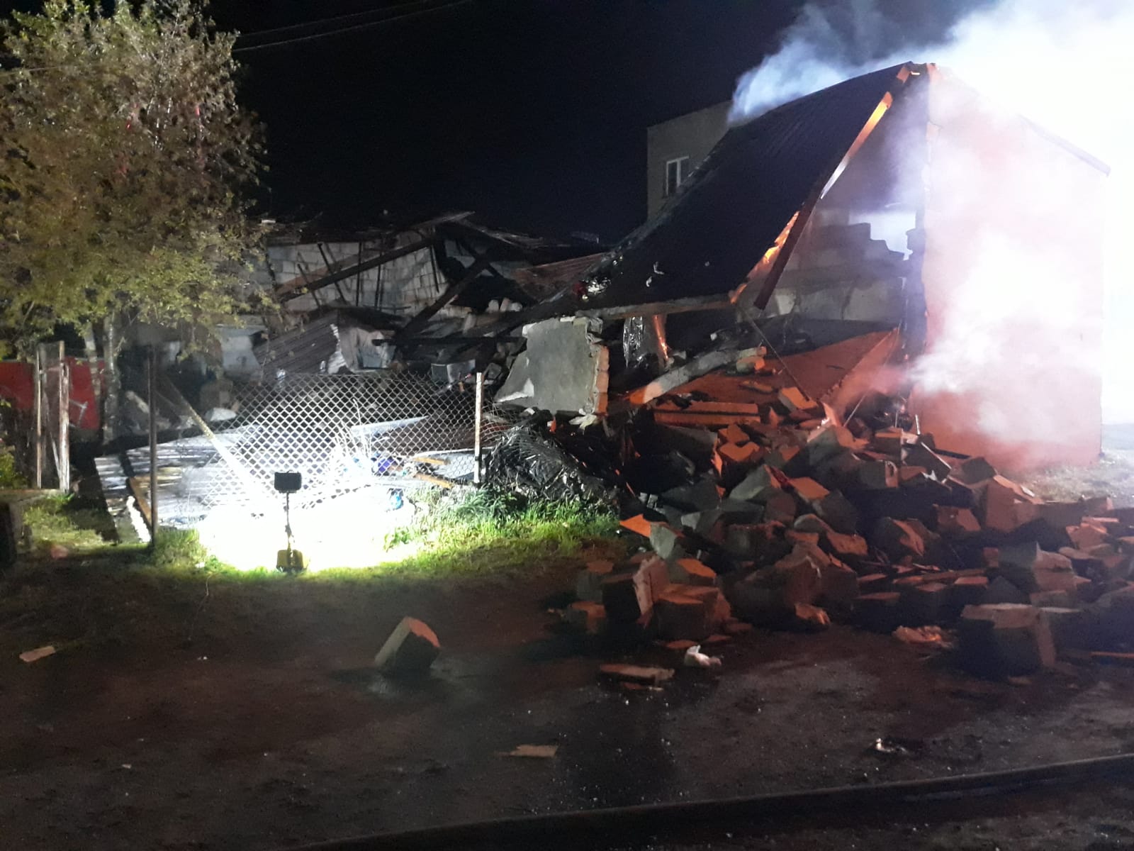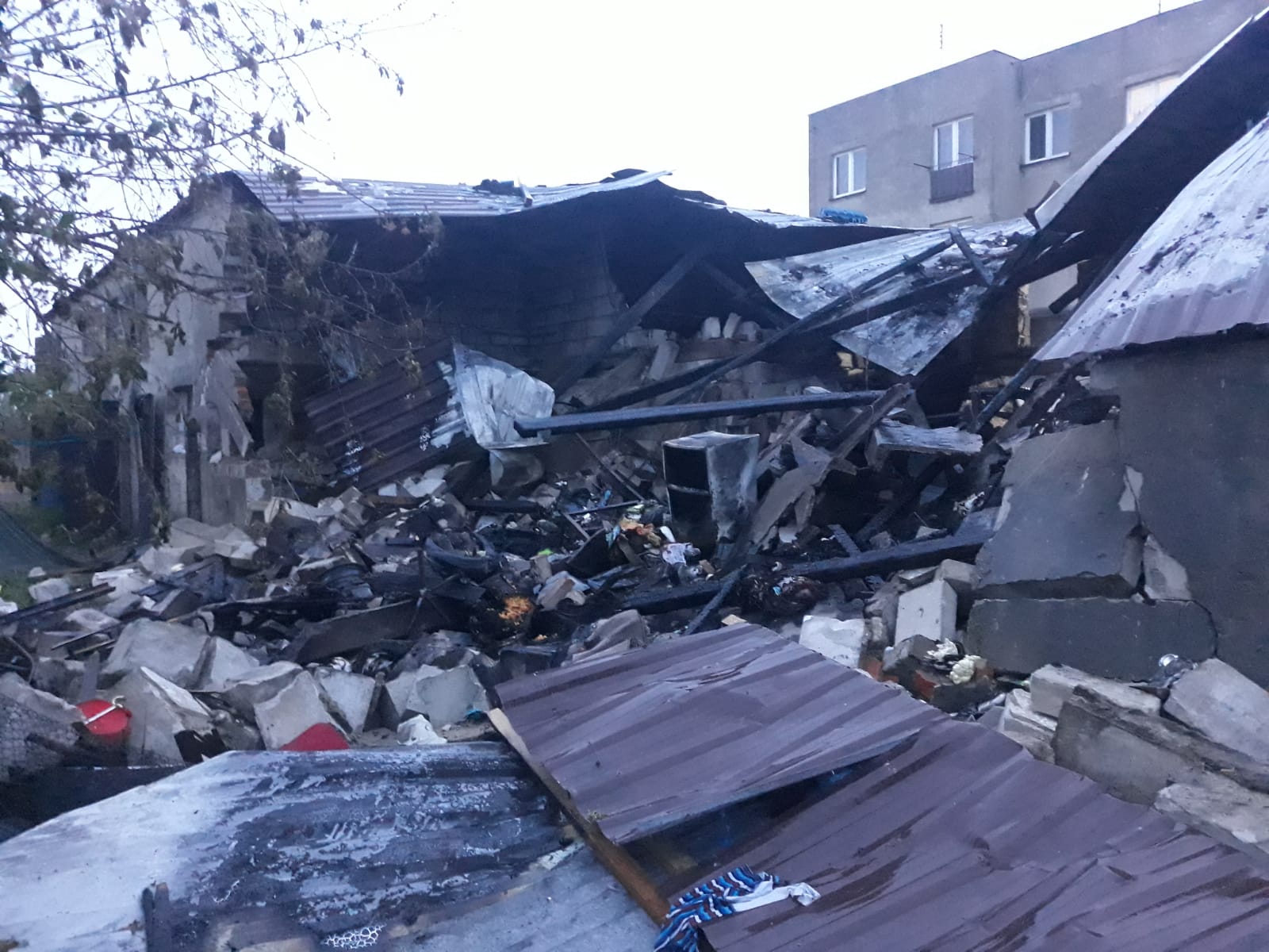 Po dojeździe na miejsce i przeprowadzonym rozpoznaniu stwierdzono, że doszło najprawdopodobniej do wybuchu, a następnie do zawalenia części budynków gospodarczych mówi dla portalu wlkp112.pl Dawid Kryś, z kościańskiej straży pożarnej