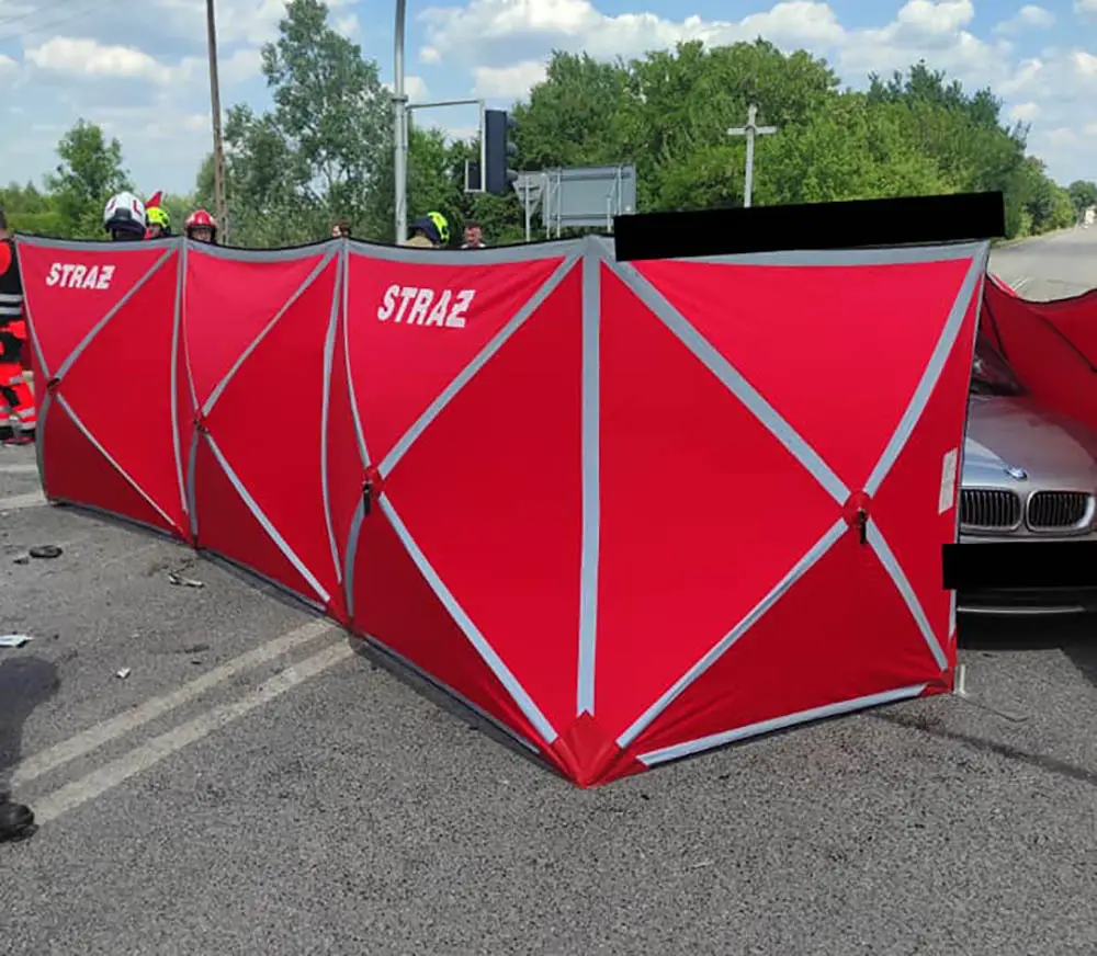 Na miejsce dojechały służby ratunkowe. Strażacy uwolnili motocyklistę. Mężczyzna był reanimowany. Niestety zmarł na miejscu wypadku.
