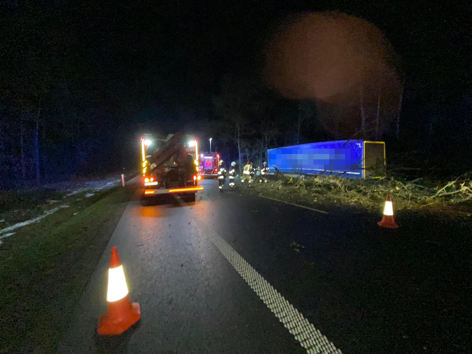 Wczoraj, w sobotę 9 stycznia o godzinie 17:41 Dyżurny Stanowiska Kierowania Komendanta Powiatowego Państwowej Straży Pożarnej w Nowym Tomyślu wpłynęło zgłoszenie z Centrum Powiadamiania Ratunkowego o wypadku samochodu ciężarowego na 109km drogi krajowej 92, brak informacji o osobach poszkodowanych.