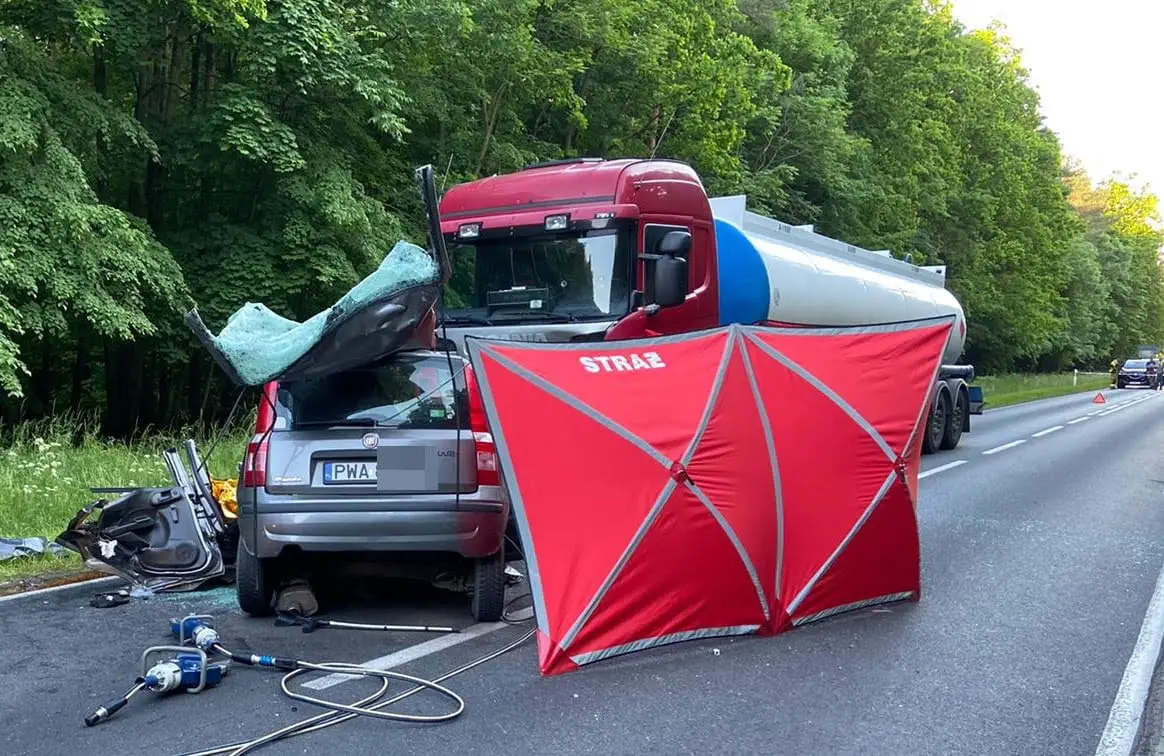 Do tragicznego w skutkach wypadku doszło, dziś w poniedziałek 7 czerwca w Pokrzywnicy. W czołowym zderzeniu cysterny z samochodem osobowym, jedna osoba zginęła na miejscu.