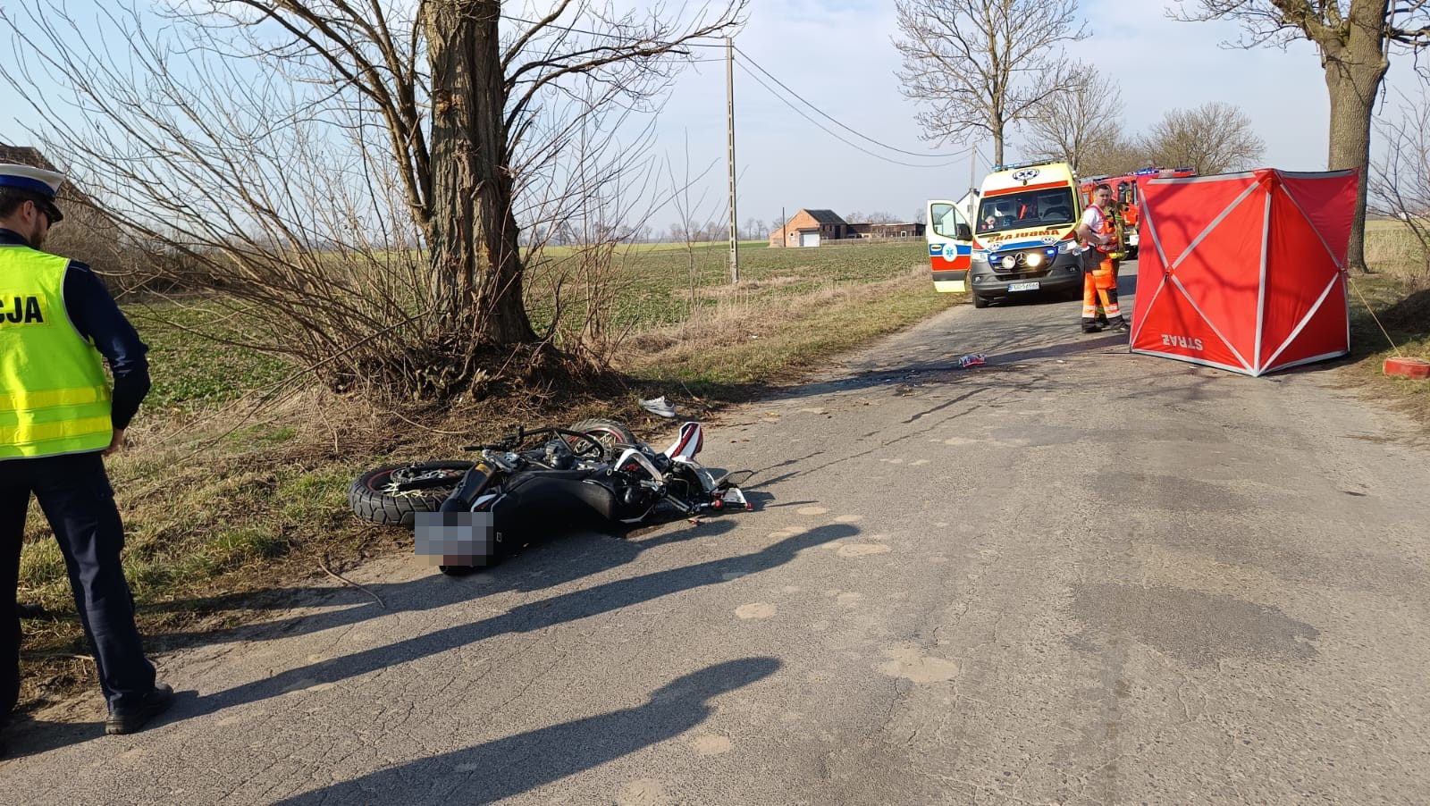 29-letni motocyklista stracił panowanie nad pojazdem i uderzył w drzewo. Mieszkaniec powiatu grodziskiego był reanimowany, niestety nie udało się przywrócić funkcji życiowych mówi dla portalu wlkp112.pl Karol Płóciniczak, z grodziskiej policji