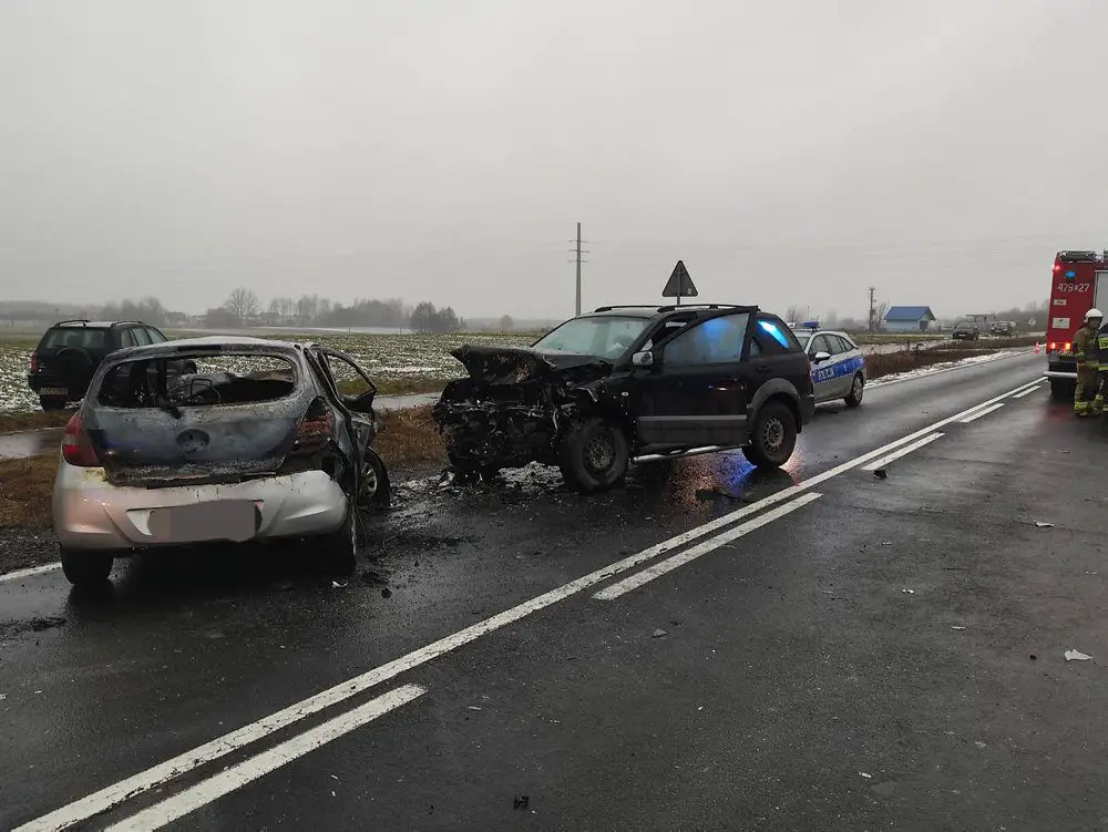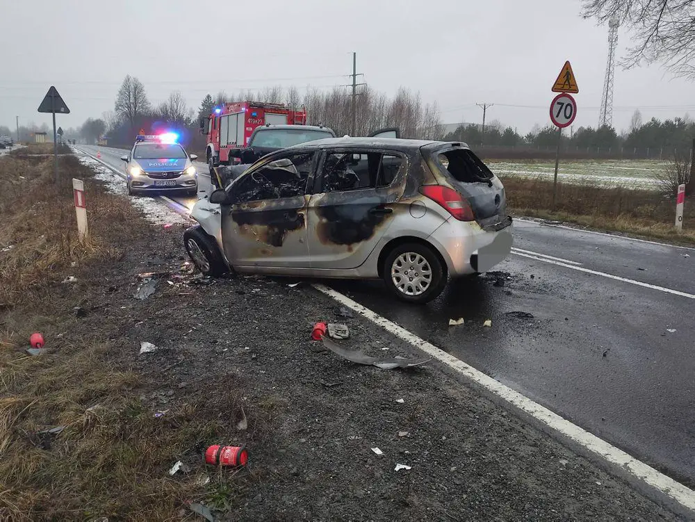Ze wstępnych ustaleń policji wynika, że doszło do czołowego zderzenia dwóch hyundaia oraz kii. W wyniku zderzenia hyundai zapalił się.