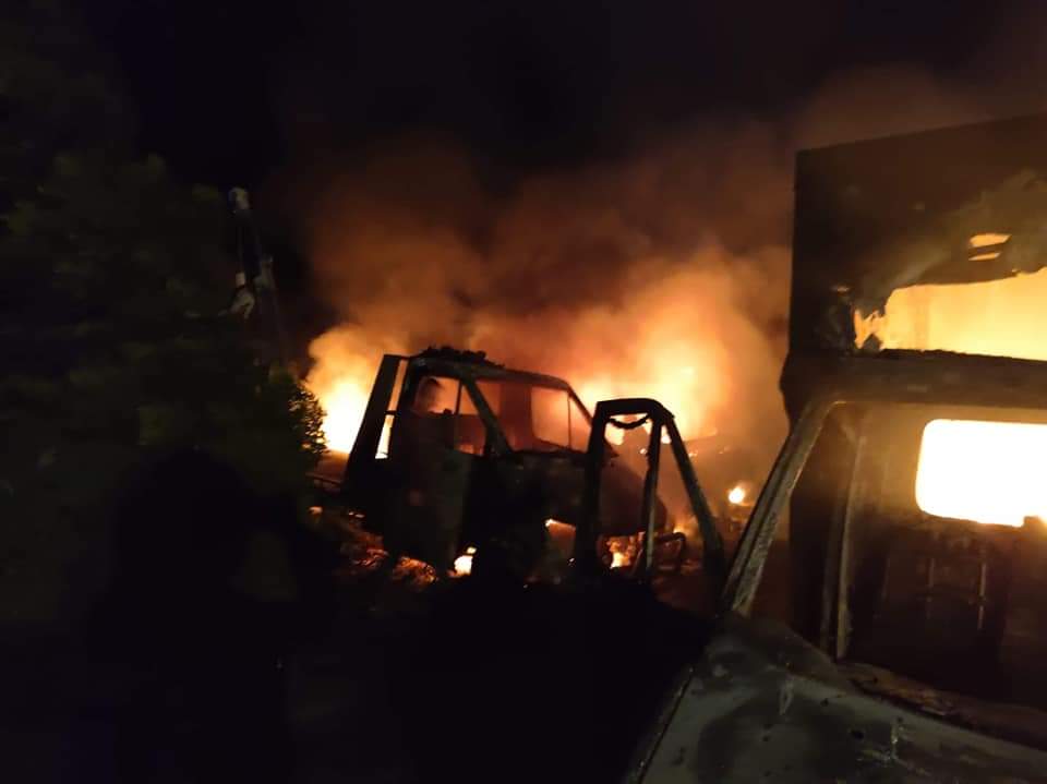 Do działań strażaków należało podanie dwóch prądów wody na palące się pojazdy, zabezpieczenie miejsca zdarzenia oraz oświetlenie terenu akcji gaśniczej.