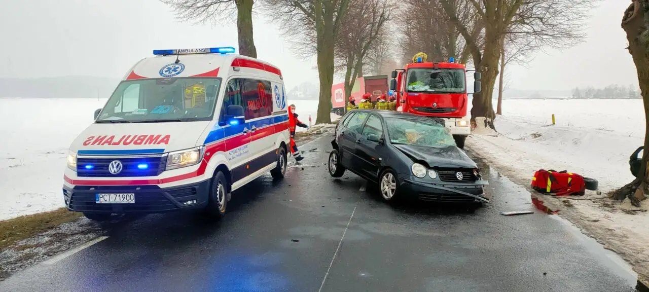 Kobieta jadąca VW Polo w kierunku Piły przekroczyła oś jezdni i zderzyła się ciężarówką, następnie uderzyła w drzewo, a odbijając się od drzewa uderzyła w auto marki VW Passat jadące w kierunku Trzcianki.