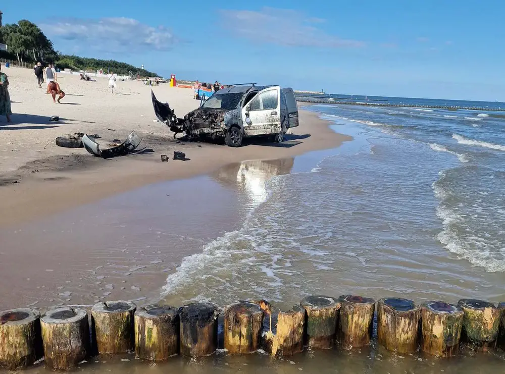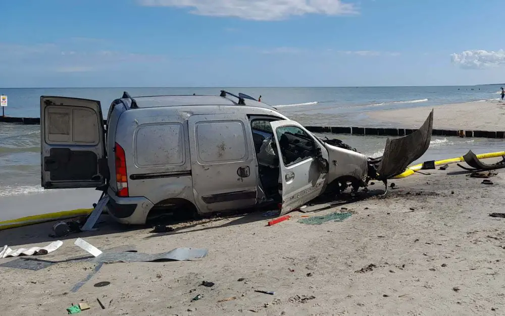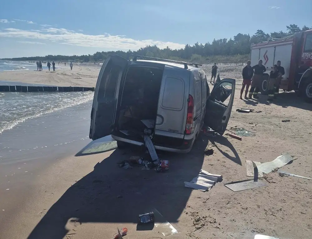 Do niecodziennego zdarzenia doszło w piątek, 11 sierpnia, plaży w Łebie. Kierujący renault jadąc plażą uderzył w falochron. Kierowca uciekł z miejsca zdarzenia.