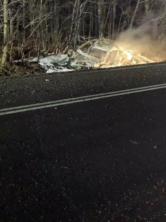 Kierowca wraz dwoma podróżującymi na szczęście zdążył opuścić pojazd przed przybyciem służb ratunkowych na miejsce zdarzenia. Do akcji zadysponowano 3 zastępy Straży Pożarnej, 3 radiowozy Policji i Zespół Ratownictwa Medycznego.