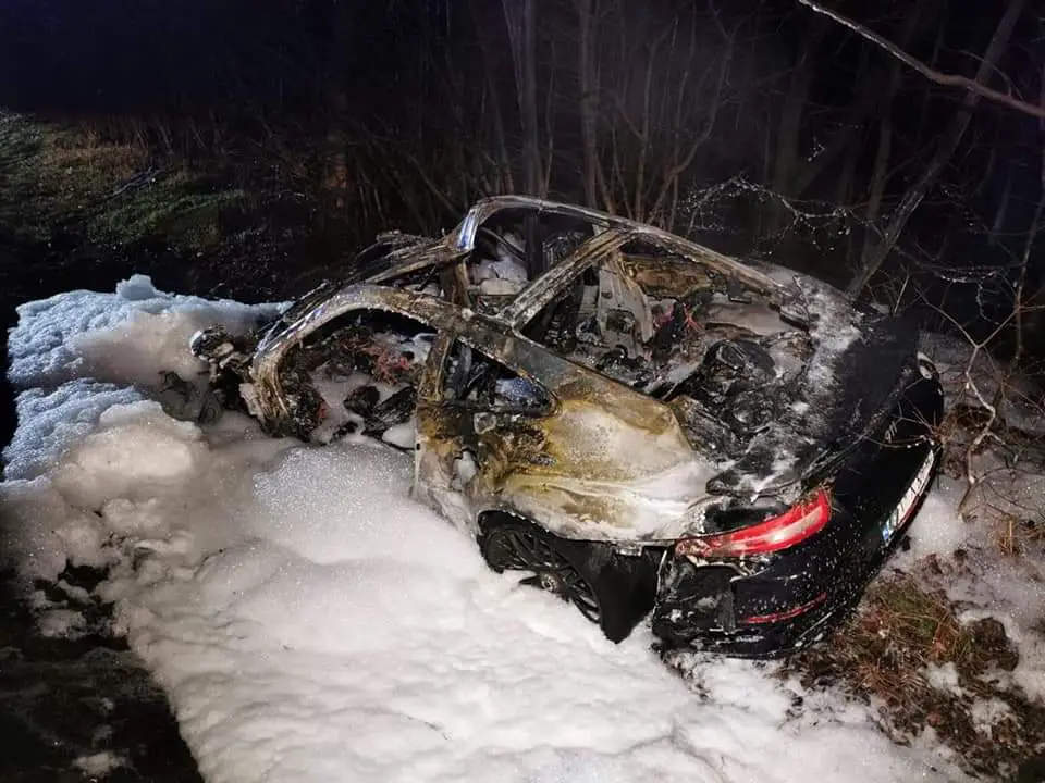 Dzisiaj, 25 grudnia chwilę po północy na trasie Ostrów Wielkopolski – Szczury na Drodze Krajowej nr 11 kierujący samochodem osobowym marki Porsche wypadł z drogi po czym stanął cały w ogniu.