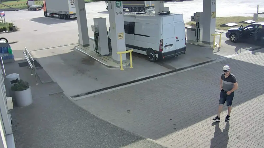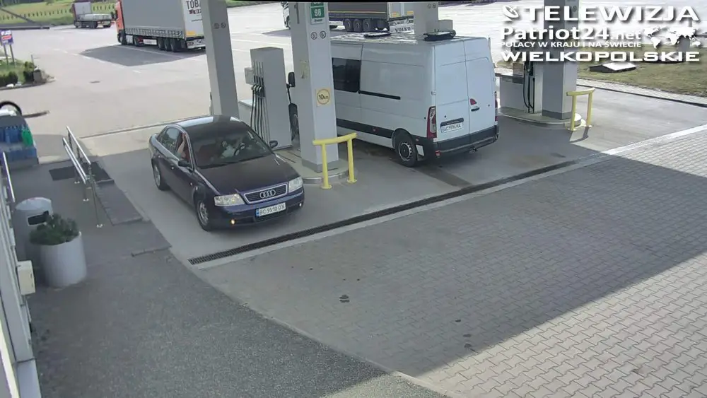 Na stacje benzynową, 10 lipca, podjechał Polak i Ukrainiec. W audi by jeszcze kierowca. Między ginami 16:30 a 16:50 podczas tankowania busa sprawcy przebili oponę w busie. Wszystko nagrała kamera monitoringu stacji paliw.