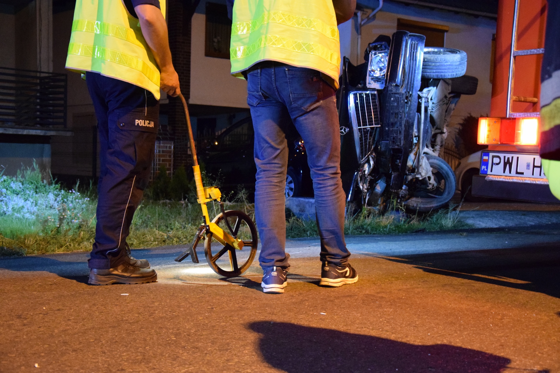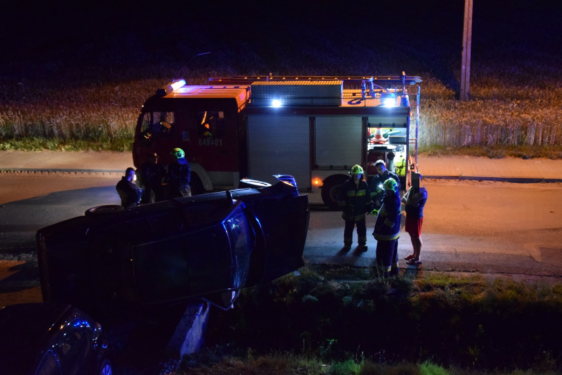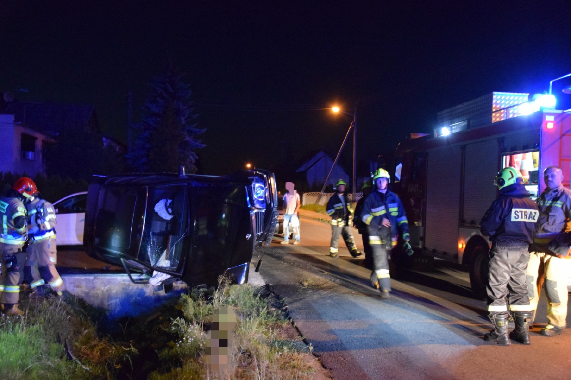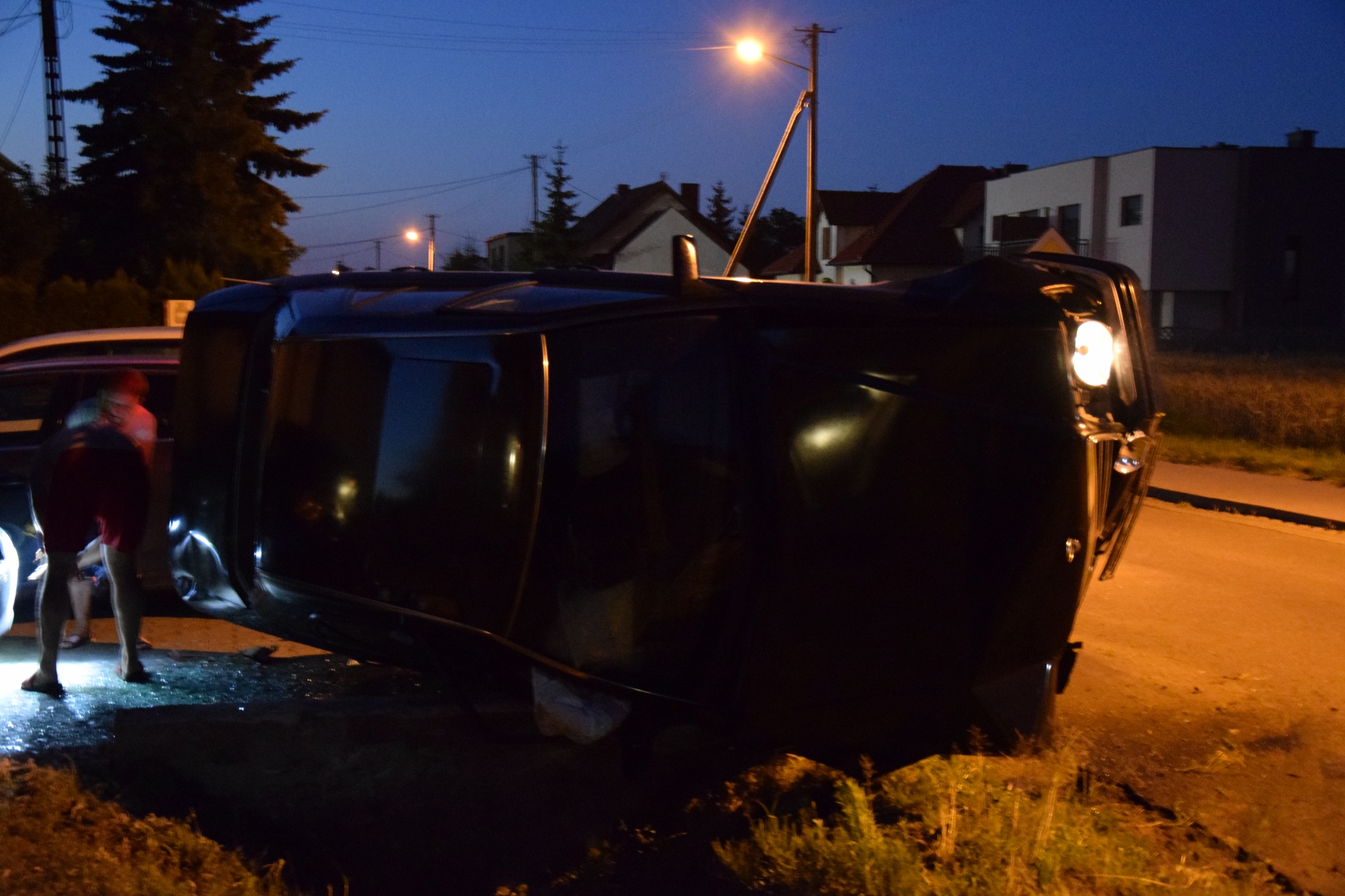 Kierujący Mercedesem 22-letni mieszkaniec Siekowa w następstwie niedostosowania prędkości jazdy do warunków drogowych stracił panowanie nad pojazdem i uderzył w betonowy przepust. W efekcie auto dachowało, uszkadzając dwa inne, zaparkowane nieopodal pojazdy.