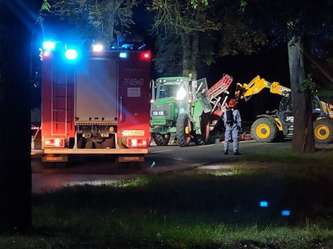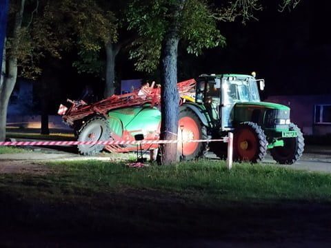 Ratownicy pracujący w strefie przepompowali ciecz z uszkodzonego opryskiwacza do drugiego podstawionego opryskiwacza.