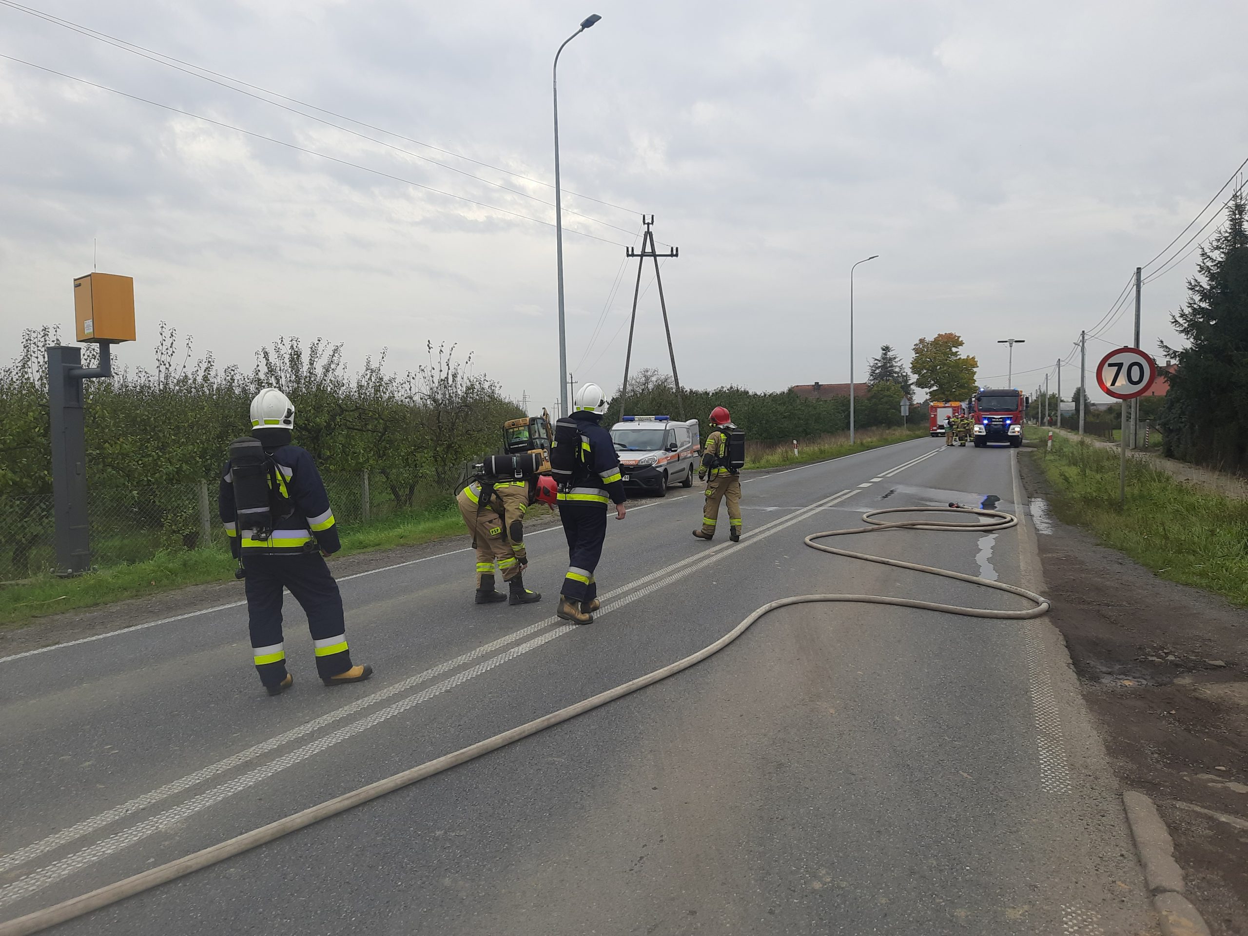 Na miejsce zdarzenia była również policja, która wyznaczyła objazd na czas prowadzonych działań czyli około 1,5 godziny.
