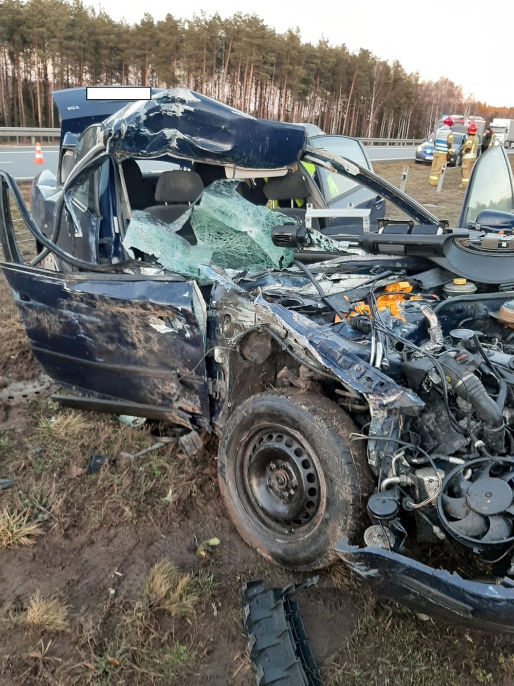 Do zdarzenia doszło na trasie S8 na pasach w kierunku Warszawy. Na miejsce natychmiast zostali wysłani policjanci z drogówki w Kępnie. Kierujący volkswagenem uderzył w ciężarówkę i barierki. Auto zostało kompletnie rozbite. Kierowca przeżył, bo był pijany.