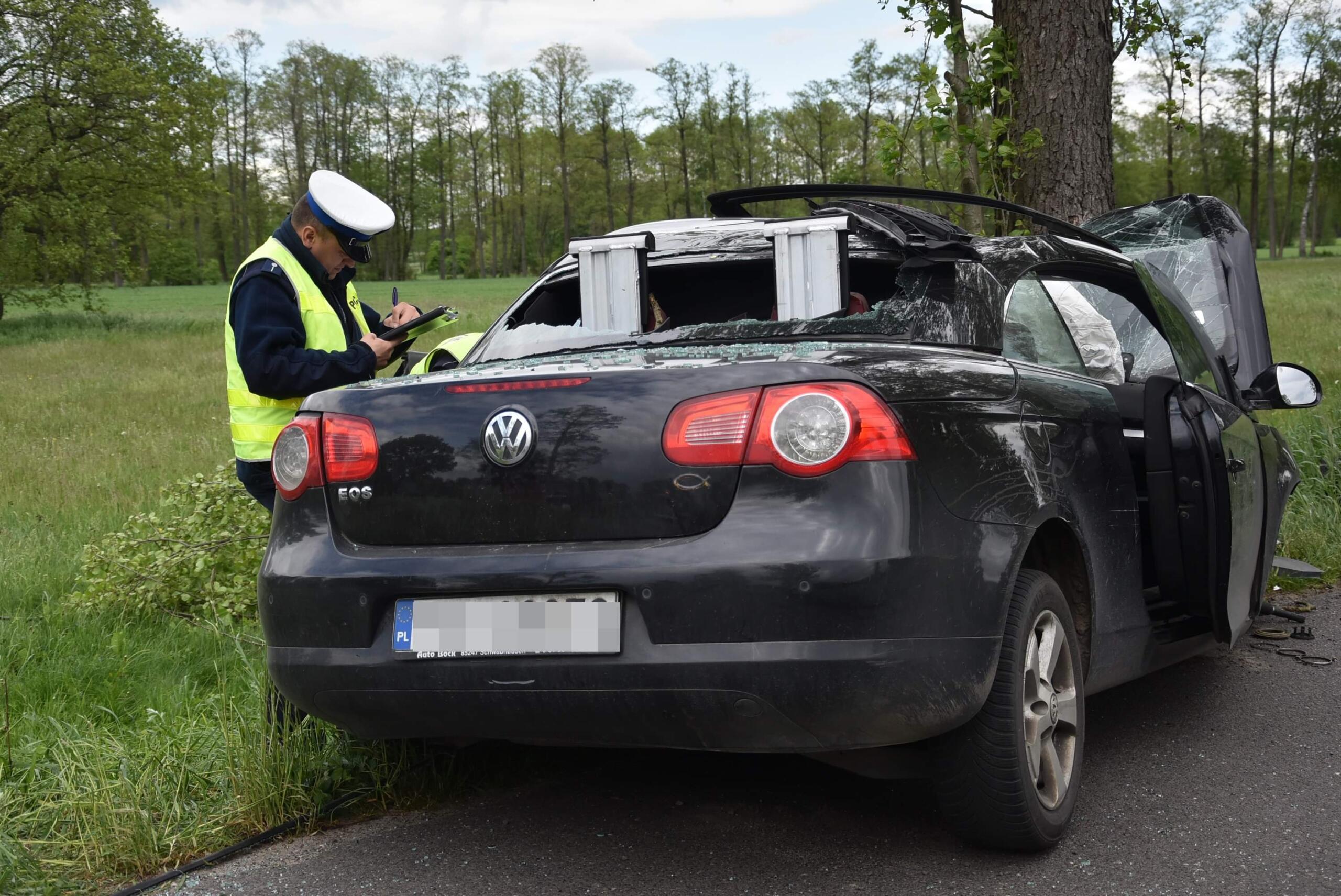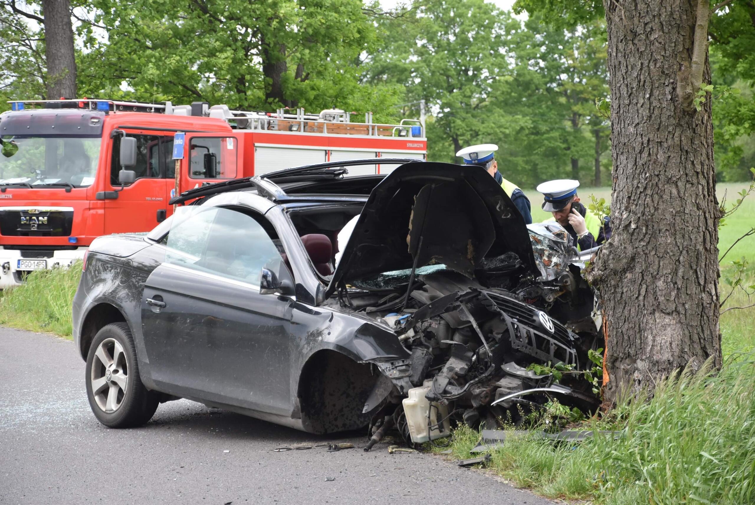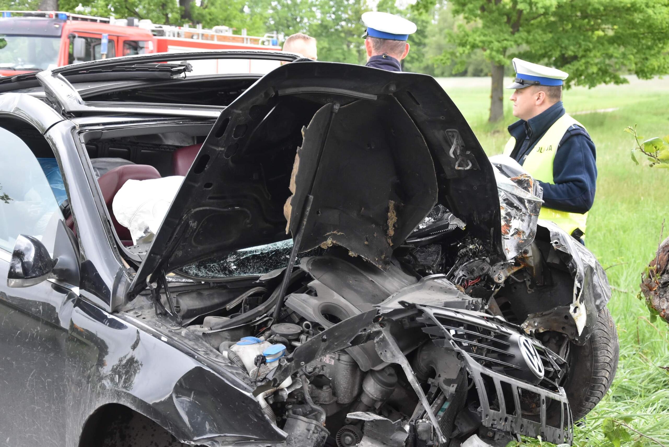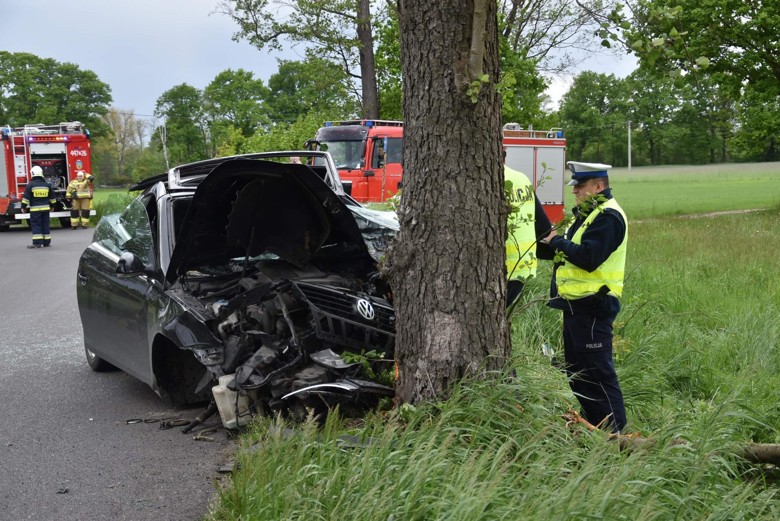 W miejscowości Albertowsko doszło do poważnego wypadku. Volkswagen roztrzaskał się o drzewo. Kierowca był strasznie agresywny.