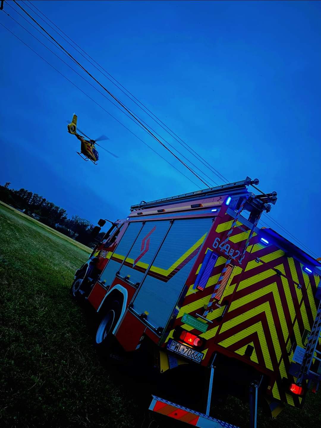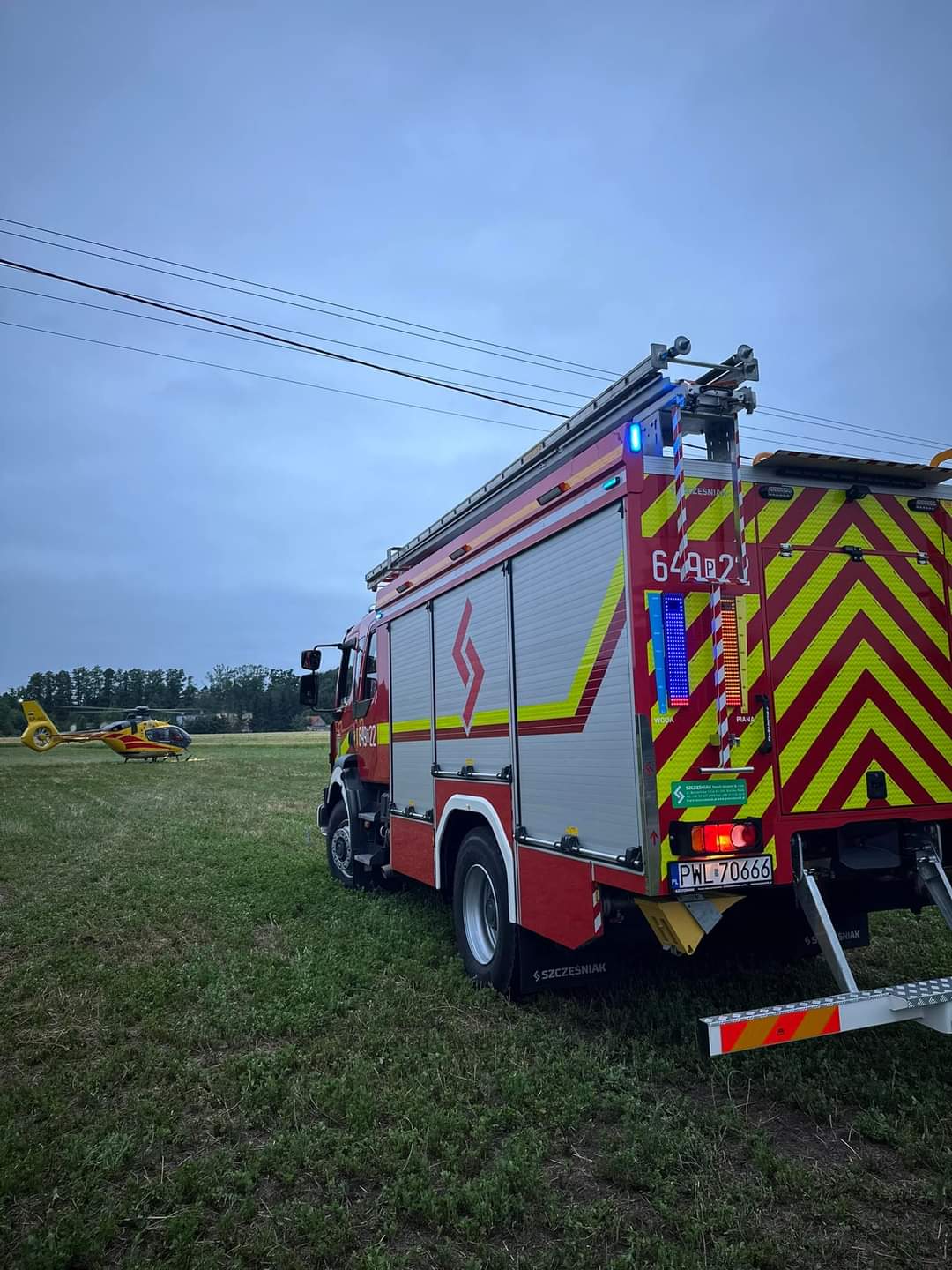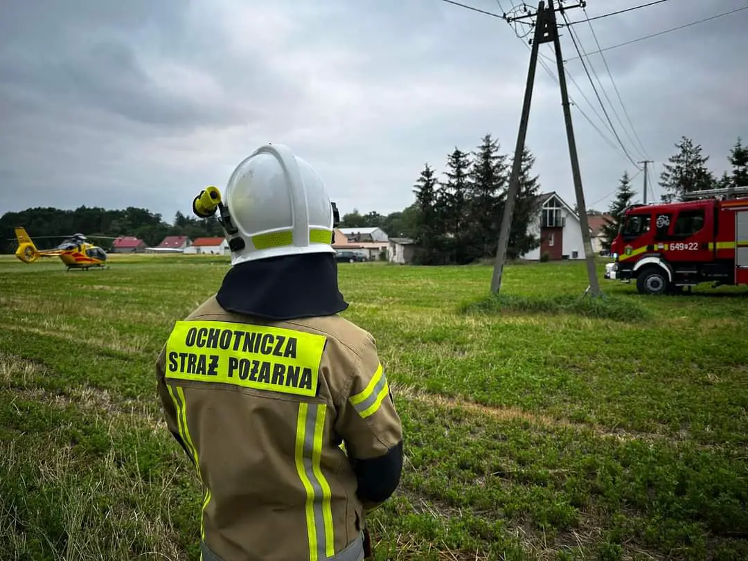Nasze działania polegały na zabezpieczeniu miejsca lądowania Śmigłowca Lotniczego Pogotowia Ratunkowego mówi dla portalu wlkp112.pl Bartosz Kasiński, z Wolsztyńskiej Straży Pożarnej