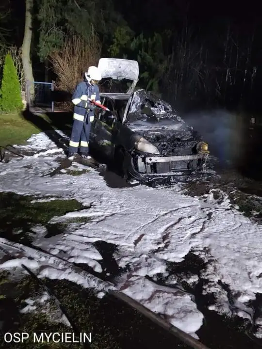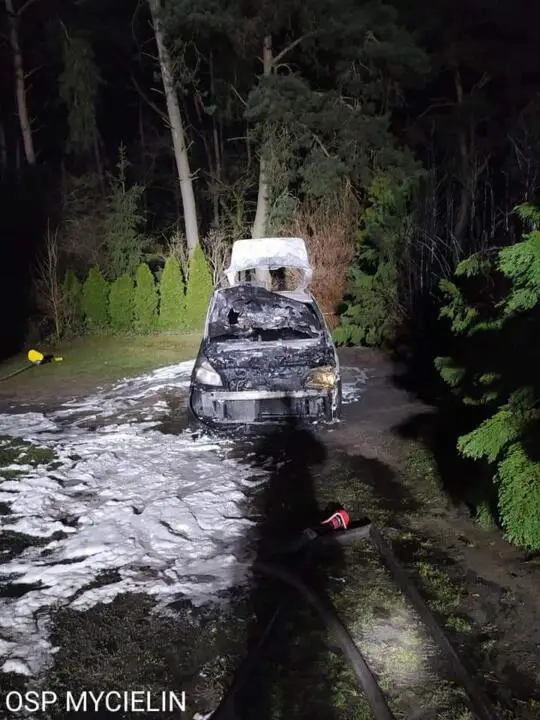 Według zgłoszenia wynikało z że w miejscowości Mycielin w powiecie Kaliskim doszło do pożaru samochodu.
