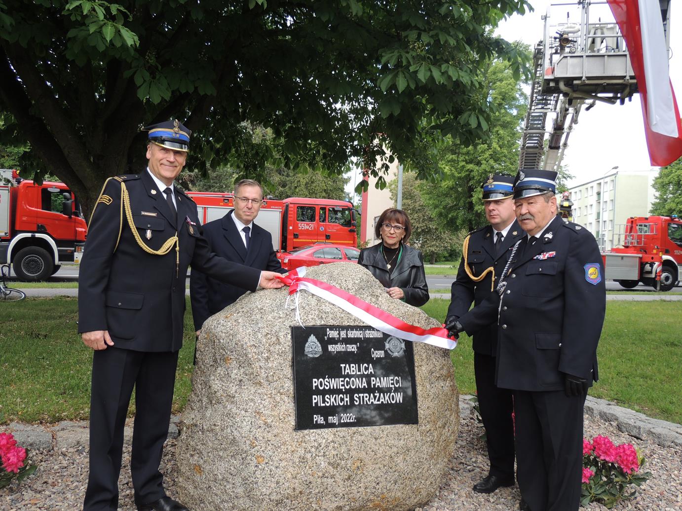 Symbolicznego odsłonięcia obelisku dokonali: Maria Kubica – Przewodnicząca Rady Miasta Piła, Piotr Głowski – Prezydent Miasta Piła, bryg. Jarosław Kołak – Komendant Powiatowy Państwowej Straży Pożarnej w Pile, dh Krzysztof Fojt – Prezes Zarządu Oddziału Powiatowego ZOSP RP w Pile oraz bryg. w st. spocz. Marek Andruszkiewicz – szef grupy inicjatywnej. Obelisk został poświęcony przez ks. Krzysztofa Kowala – kapelana pilskich służb mundurowych.