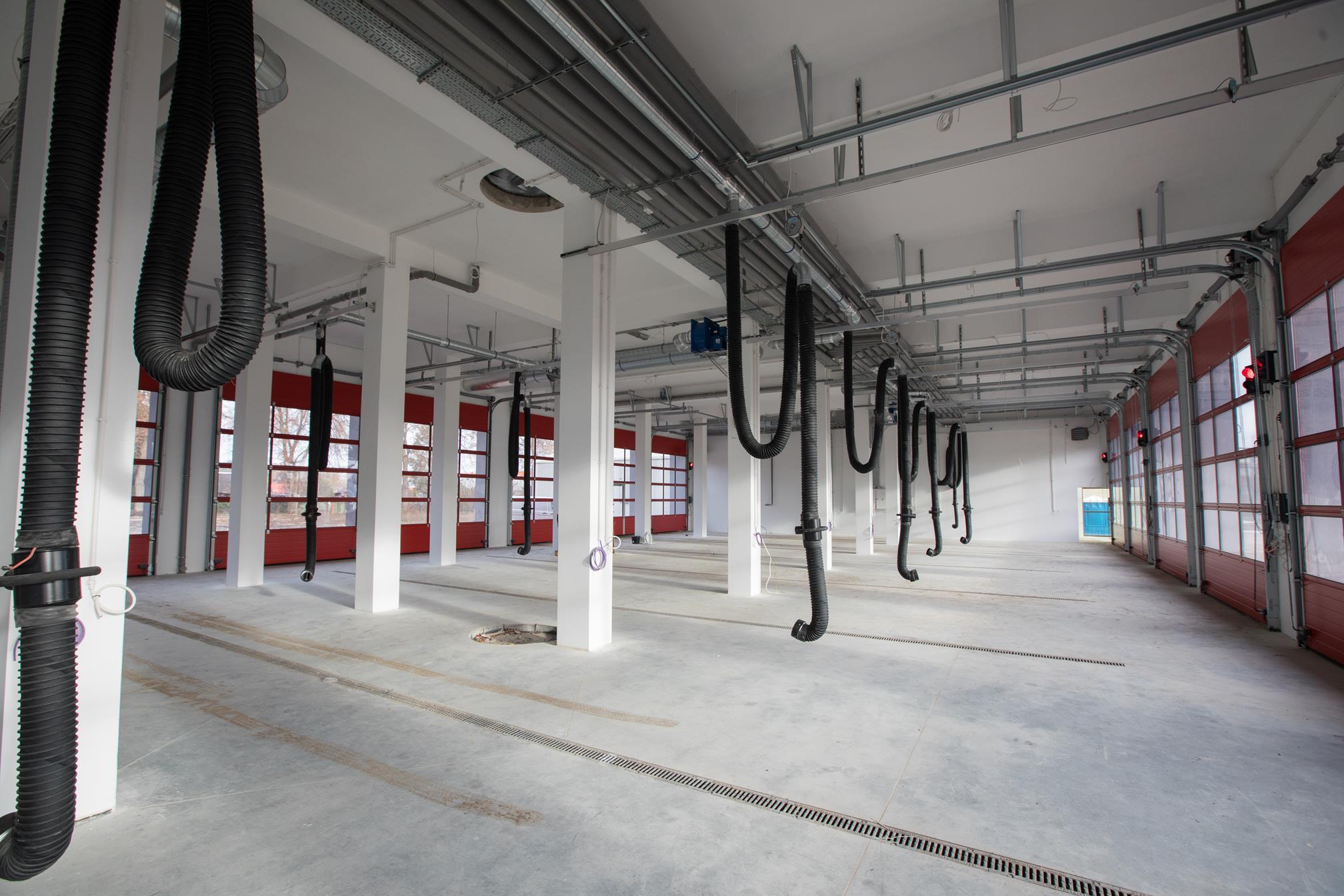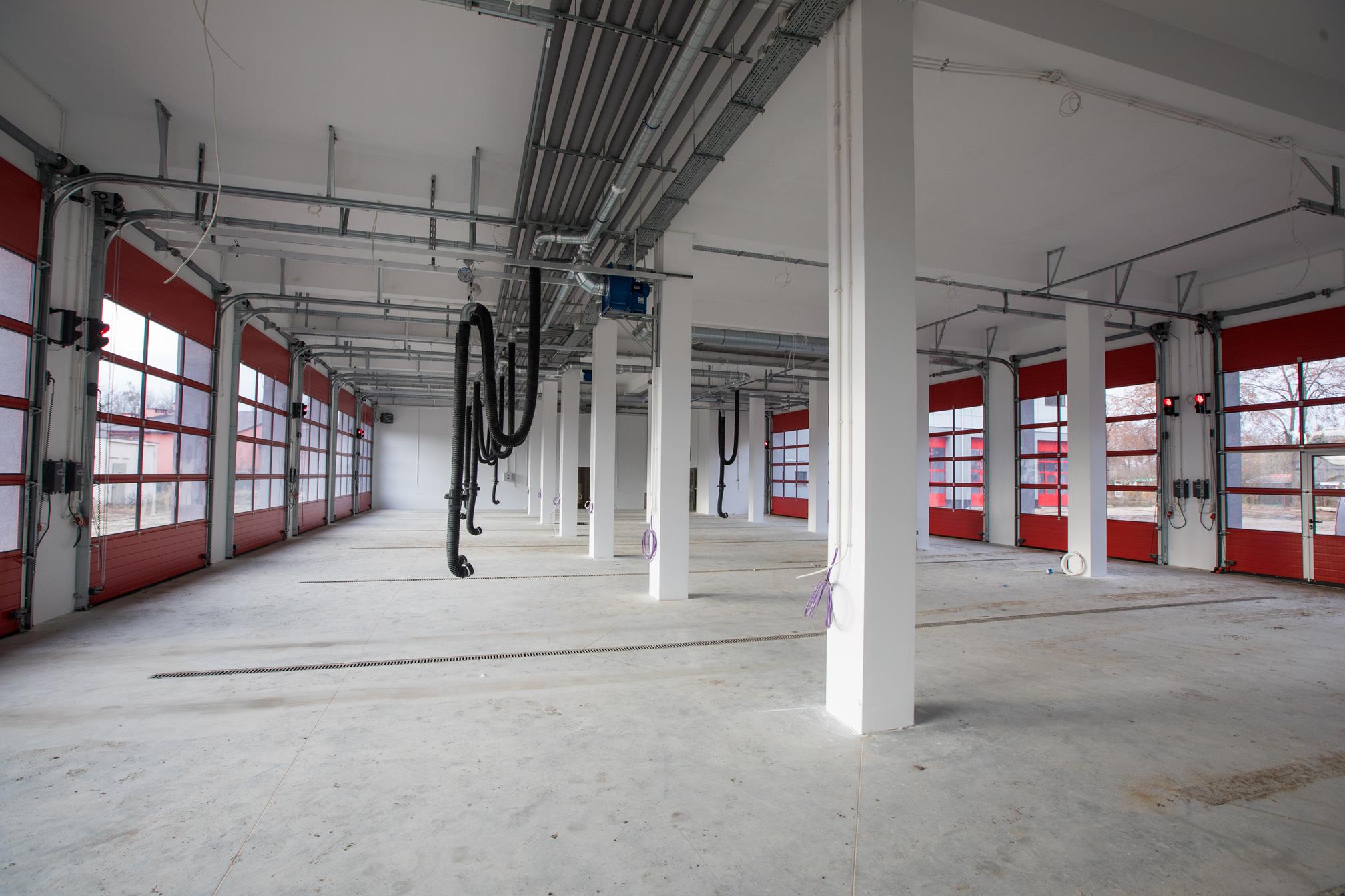 Prace tego etapu obejmowały : montaż instalacji fotowoltaicznej, montaż bram garażowych, odciąg miejscowy spalin, montaż klimatyzatorów oraz instalacji wentylacyjnej, montaż grzejników i nagrzewnic wodnych, montaż sufitów podwieszanych, wykonanie gładzi gipsowych oraz montaż agregatu prądotwórczego.