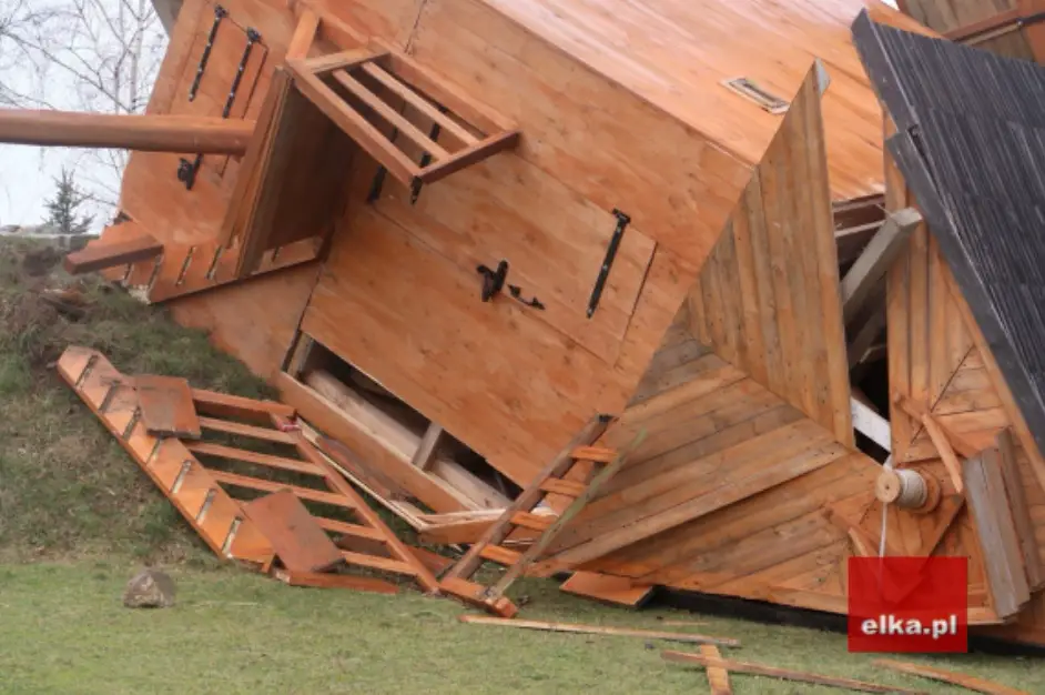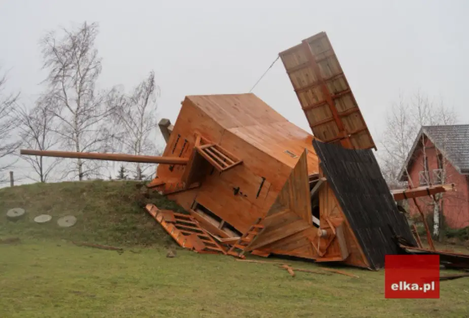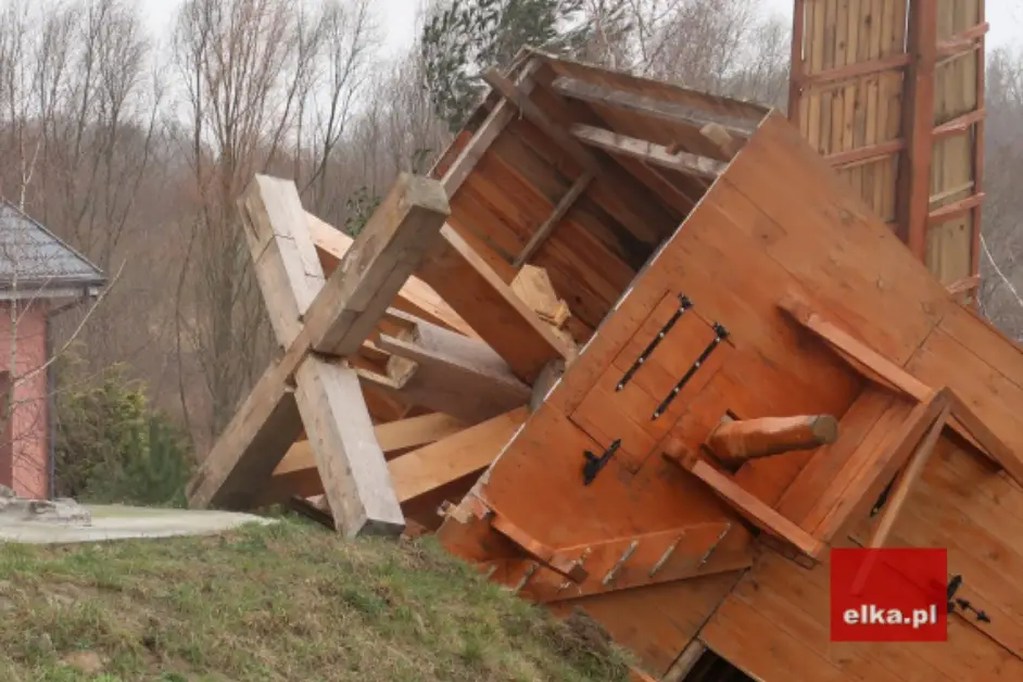 Poważne szkody wyrządziła wichura na terenie Muzeum Młynarstwa i Rolnictwa w Osiecznej. Kilka minut po godz. 7.00 wiatr dosłownie zdmuchnął wiatrak edukacyjny. – W takim momencie po prostu pęka serce – powiedział placówki Jarosław Jankowski.