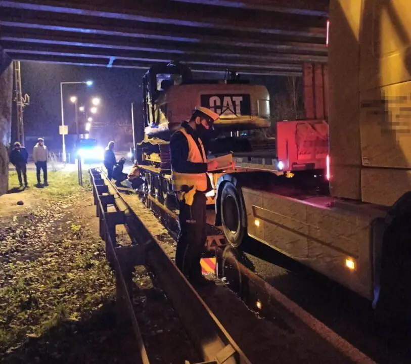 Do zdarzenia doszło w środę, 18 listopada. Kierujący lawetą wioząc koparkę zahaczył o wiadukt pod ul. Hetmańską i utknął pod nim.