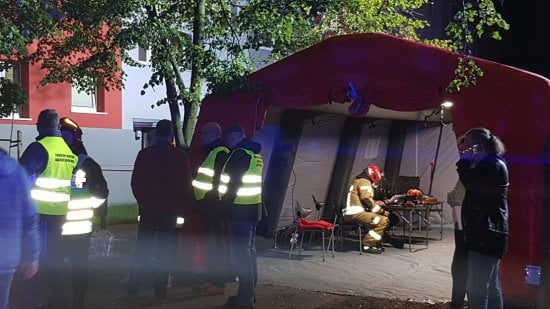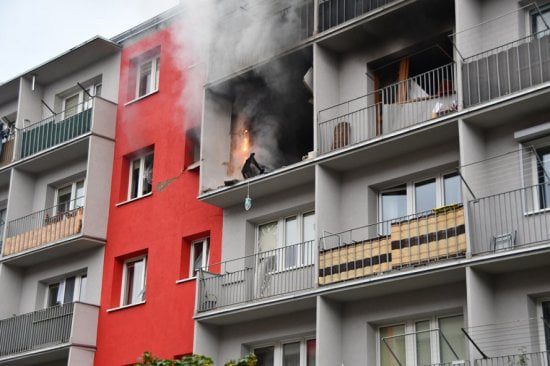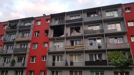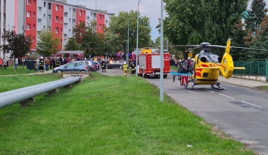 Po dotarciu na miejsce zdarzenia zastępów straży pożarnej przystąpiono do działań gaśniczych oraz przeszukania gruzowiska. W wyniku prowadzonych czynności ratowniczych odnaleziono dwie osoby. Strażacy wykonali dostęp do osób uwięzionych w mieszkaniach poprzez usunięcie warstwy gruzu oraz uszkodzonych elementów wyposażenia wnętrz, po czym niezwłocznie przystąpili do ewakuacji na zewnątrz budynku do przygotowanego pola medycznego. Poszkodowanym udzielono kwalifikowanej pierwszej pomocy i przekazano ich zespołom ratownictwa medycznego. Ranni zostali przetransportowani do szpitala z wykorzystaniem śmigłowca Lotniczego Pogotowia Ratunkowego oraz karetki. Z całego budynku mieszkalnego ewakuowanych zostało łącznie 50 osób. Obiekt został sprawdzony na obecność gazów niebezpiecznych za pomocą miernika wielogazowego, który nie wykazał zagrożenia.