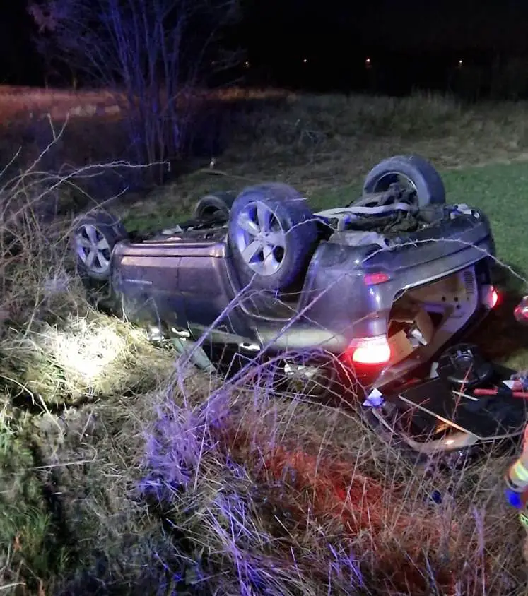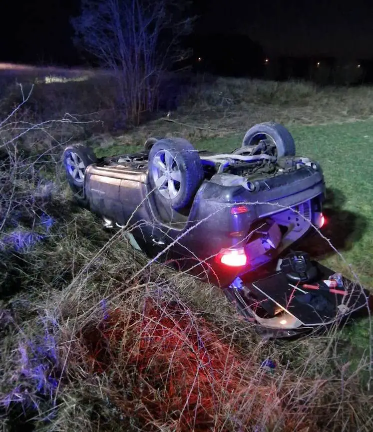 Samochód wypadł z drogi i dachował. Mało tego kierowca, który kierował pojazdem postanowił uciec z miejsca zdarzenia. Powód był jeden..był kompletnie pijany.