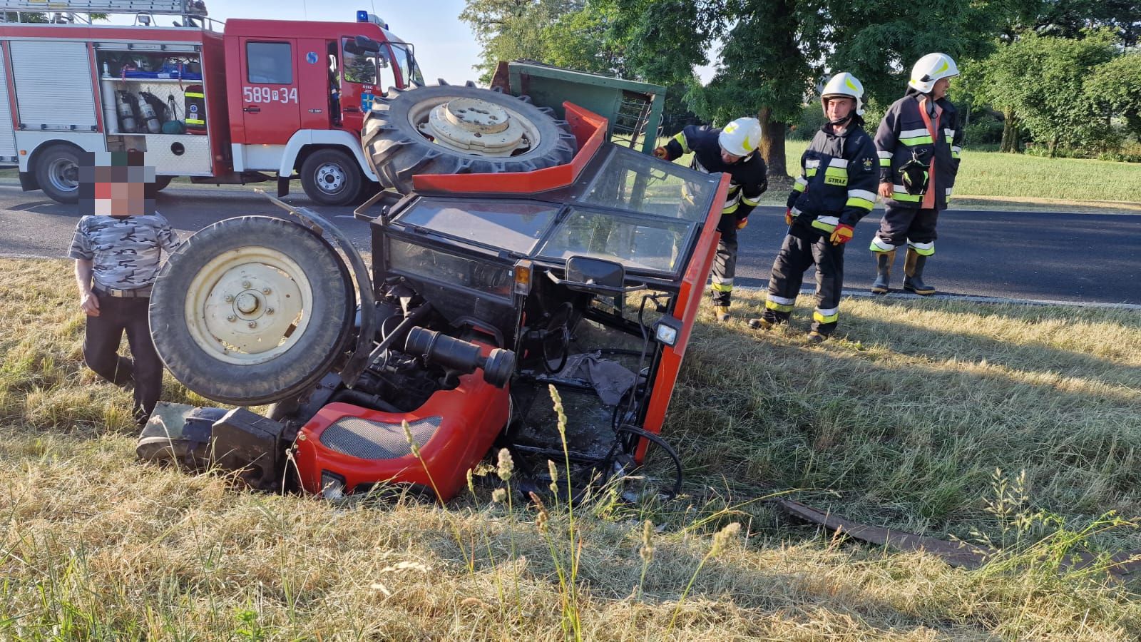 Po dotarciu pierwszych zastępów straży pożarnej na miejsce zdarzenia zastano uszkodzony samochód ciężarowy oraz ciągnik rolniczy z zawieszoną klatka do przewozu zwierząt. Kierujący ciągnikiem rolniczym doznał obrażeń głowy, natomiast kierowcy samochodu ciężarowego nic się nie stało. Strażacy po dokonanym rozpoznaniu zabezpieczyli miejsce zdarzenia udzielili pierwszej pomocy medycznej poszkodowanemu kierowcy ciągnika rolniczego. Przy wykorzystaniu narzędzi hydraulicznych oswobodzono zakleszczone zwierzę w metalowej klatce, którą później przeładowano na inna klatkę. Przybyły na miejsce zdarzenia zespół ZRM przebadał poszkodowanych i zabrał do szpitala kierowcę ciągnika rolniczego.