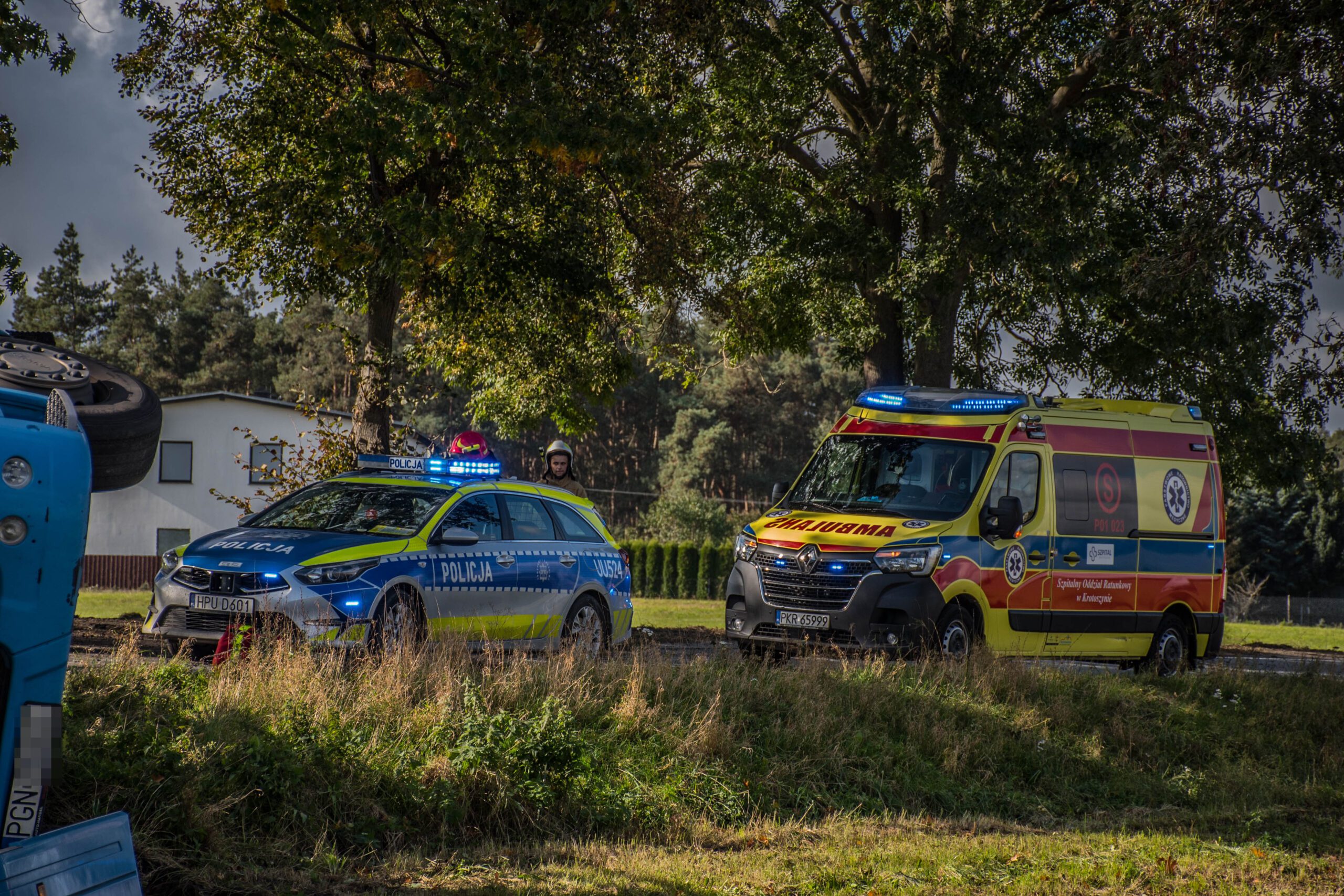 Zgłoszenie do Stanowiska Kierowania Komendanta Powiatowego PSP w Krotoszynie wpłynęło o godzinie 10:59. W momencie przybycia jednostek ochrony przeciwpożarowej na miejsce wypadku kierowca zestawu transportowego znajdował się na zewnątrz pojazdu.