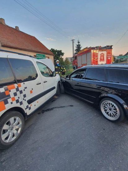 Po dojeździe na miejsce zdarzenia strażacy zastali dwa samochody osobowe, które zderzyły się ze sobą. Kierujący opuścili pojazdy przed przybyciem SP i znajdowali się w pobliżu.