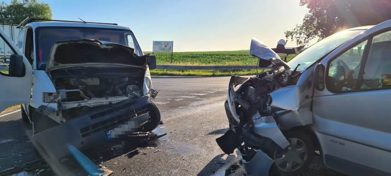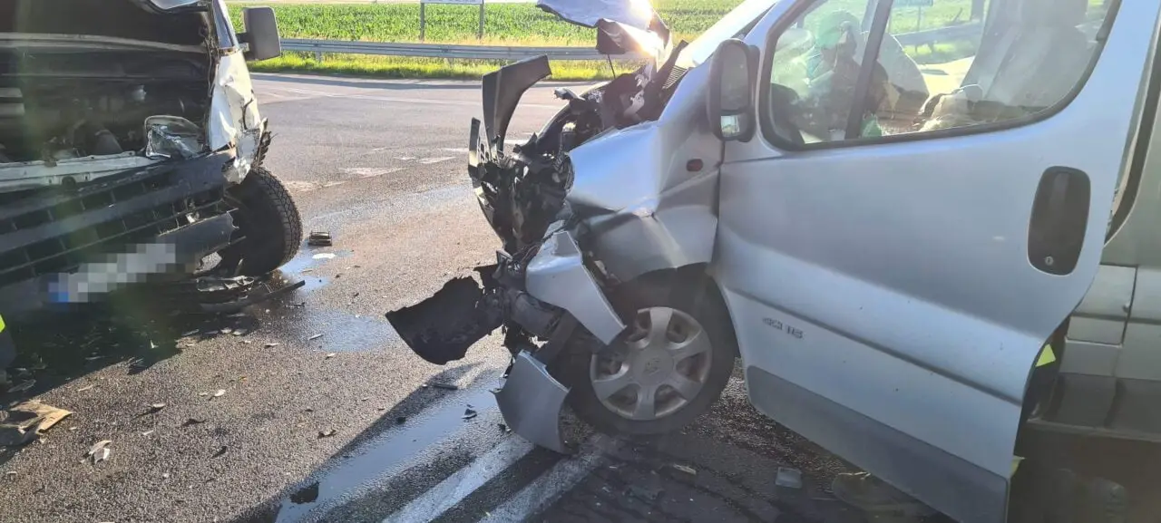 Na skrzyżowaniu drogi w kierunku na Karczewo doszło do wymuszenia pierwszeństwa przez jednego z kierowców, po czym doszło do zderzenia obydwu pojazdów marki Renault Trafic oraz Fiat