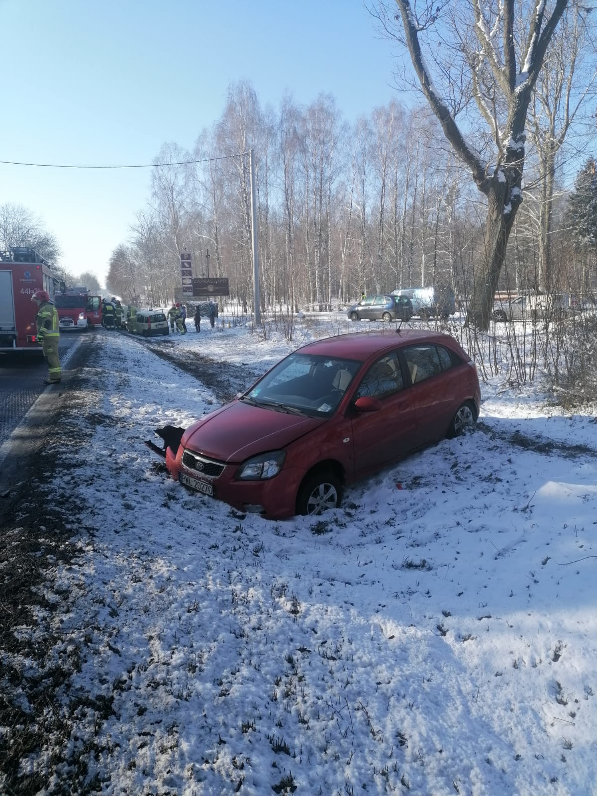 Na skutek zderzenie dwóch pojazdów jedna osoba przytomna została przetransportowana do szpitala. Pozostałym dwóm uczestnikom wypadku nic się nie stało.