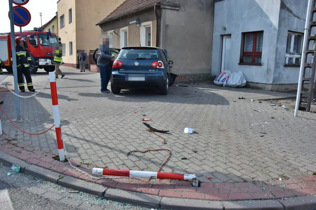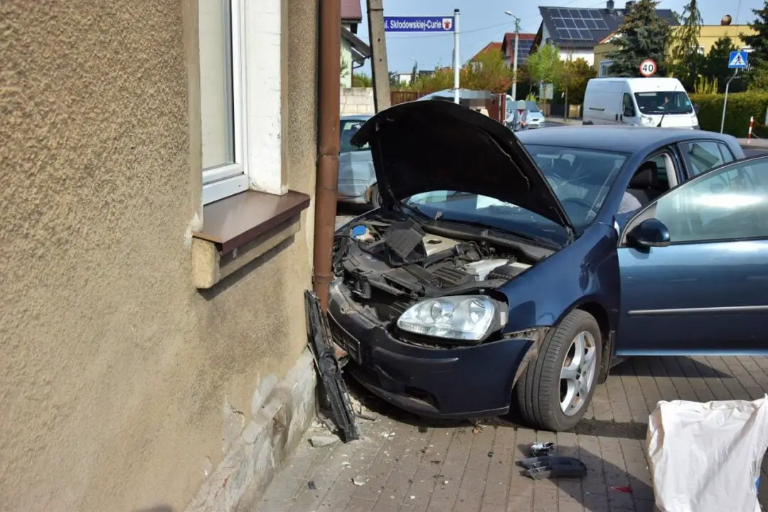Do zdarzenia doszło przed godziną 9.00. Według wstępnych ustaleń policji, kierujący volkswagenem golfem, 59-letni mieszkaniec gminy Kościan, jadąc ul. Koszewskiego nie ustąpił pierwszeństwa prawidłowo jadącemu ul. Sierakowskiego samochodowi marki renault scenic, za kierownicą którego siedział 61-letni kościaniak. Doszło do zderzenia pojazdów, a golf przemieścił się, uszkodził słupki, wjechał na chodnik i uderzył w dom. Jedna osoba, skarżąca się na bóle klatki piersiowej, trafiła do szpitala na badania. Trwa oczekiwanie na wyniki badań, jednak najprawdopodobniej policja zdarzenie zakwalifikuje jako kolizję drogową. Kierujący byli trzeźwi. Zderzenie dwóch samochodów spowodowało niewielkie utrudnienia w ruchu na Sierakowskiego.