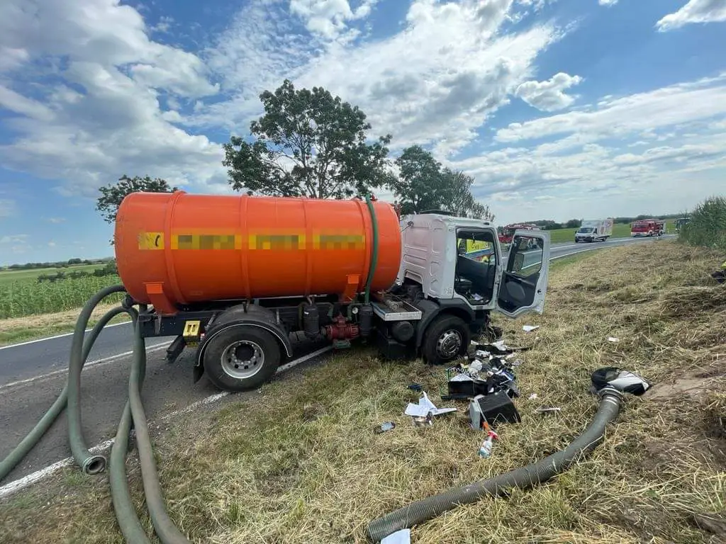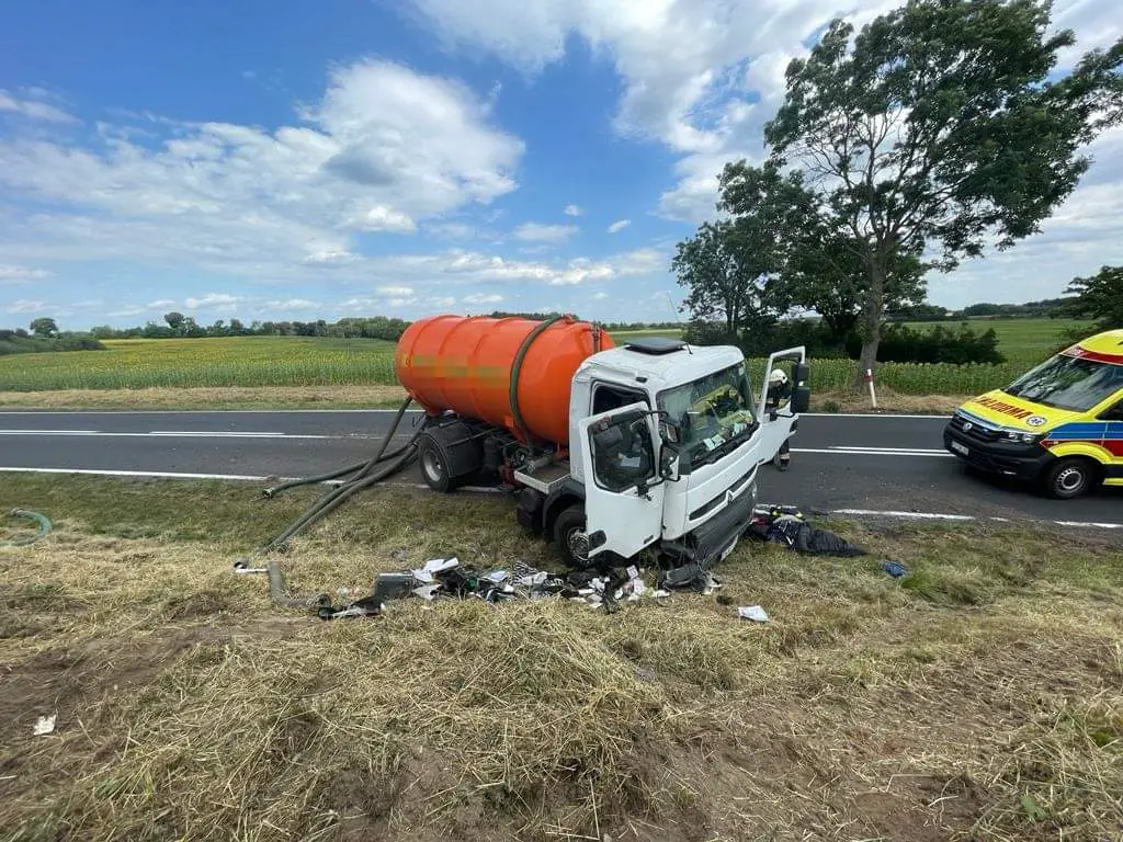 Kierowca wozu asenizacyjnego został ranny. Do wypadku doszło w poniedziałek 17 lipca około godziny 10:40 na drodze wojewódzkiej 197 w miejscowości Pawłowo Skockie.