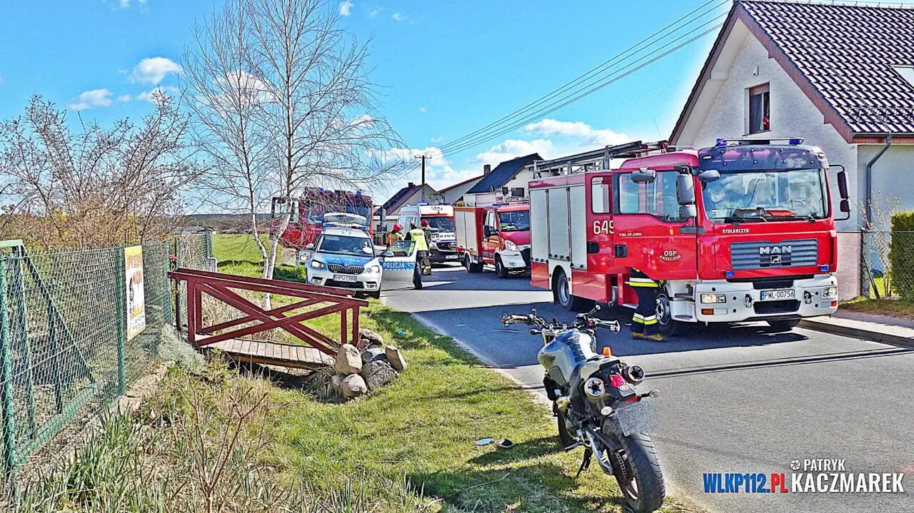 Policjanci ustalili, że kierujący motocyklem 30-letni mężczyzna mieszkaniec Łupic, potrącił 70-letnią kobietę mieszkankę Kaszczoru. Na skutek zdarzenia potrącona kobieta z obrażeniami głowy i ogólnymi potłuczeniami została przetransportowana do Wolsztyńskiego szpitala. Na miejscu zdarzenia przy udziela technika kryminalistyki przeprowadzono oględziny. Policjanci z Wolsztyna badają wszelkie okoliczności przyczyny jak doszło do zdarzenia. W chwili zdarzenia kierowca był trzeźwy.