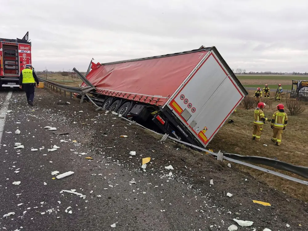 Do wypadku doszło w piątek, 4 marca, na trasie S5 pod Poznaniem. Zderzyły się dwie ciężarówki. Obie wypadły z drogi i przewróciły się. Jedna ranna osoba została zabrana do szpitala. Na miejscu wypadku pracują policjanci.